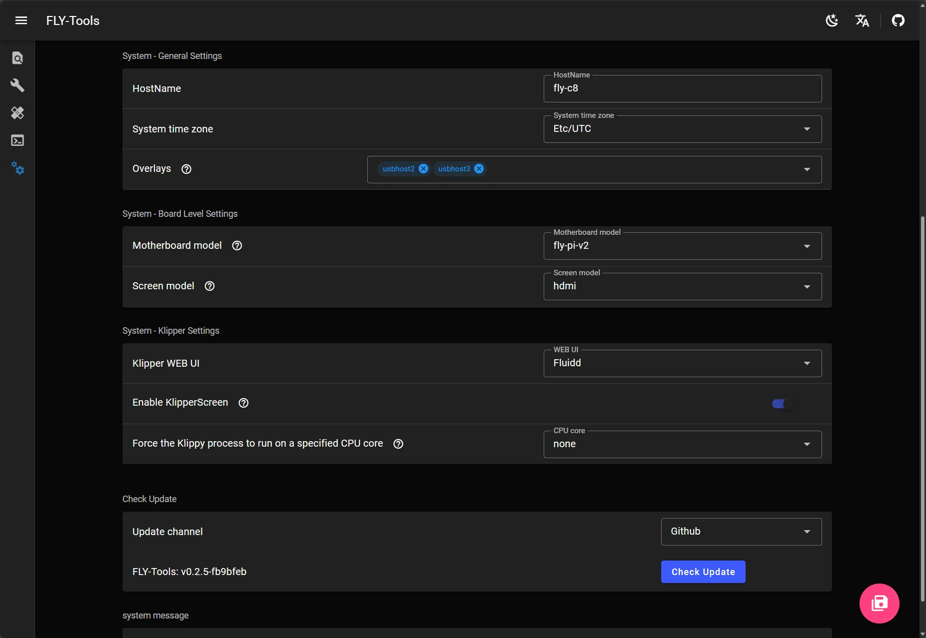 • 支持强制Klippy进程运行在指定的CPU核心,可指定Klipper在选择的核心下运行