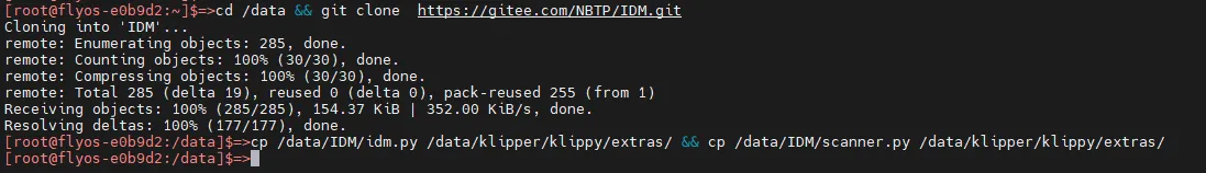 cp /data/IDM/idm.py /data/klipper/klippy/extras/