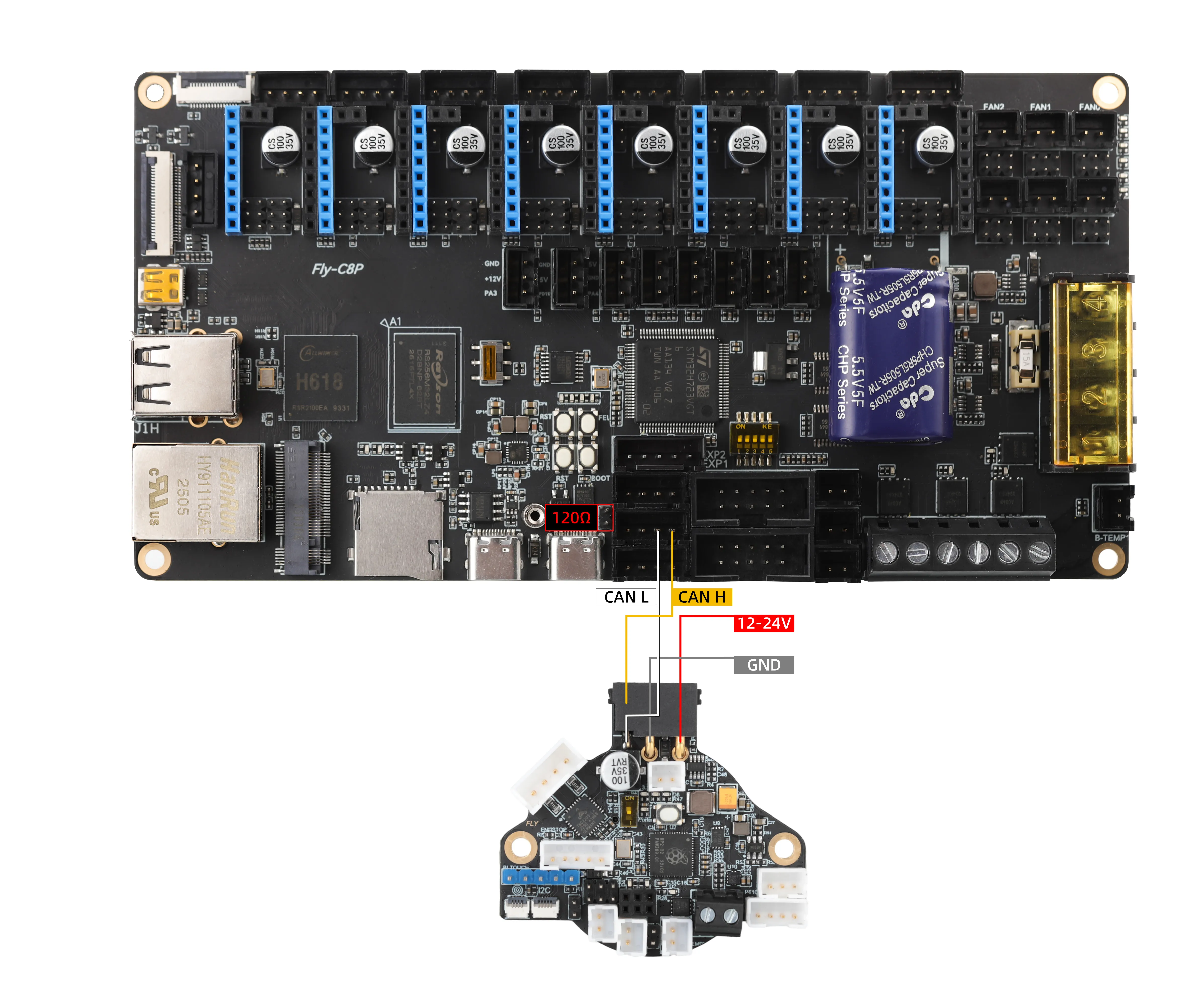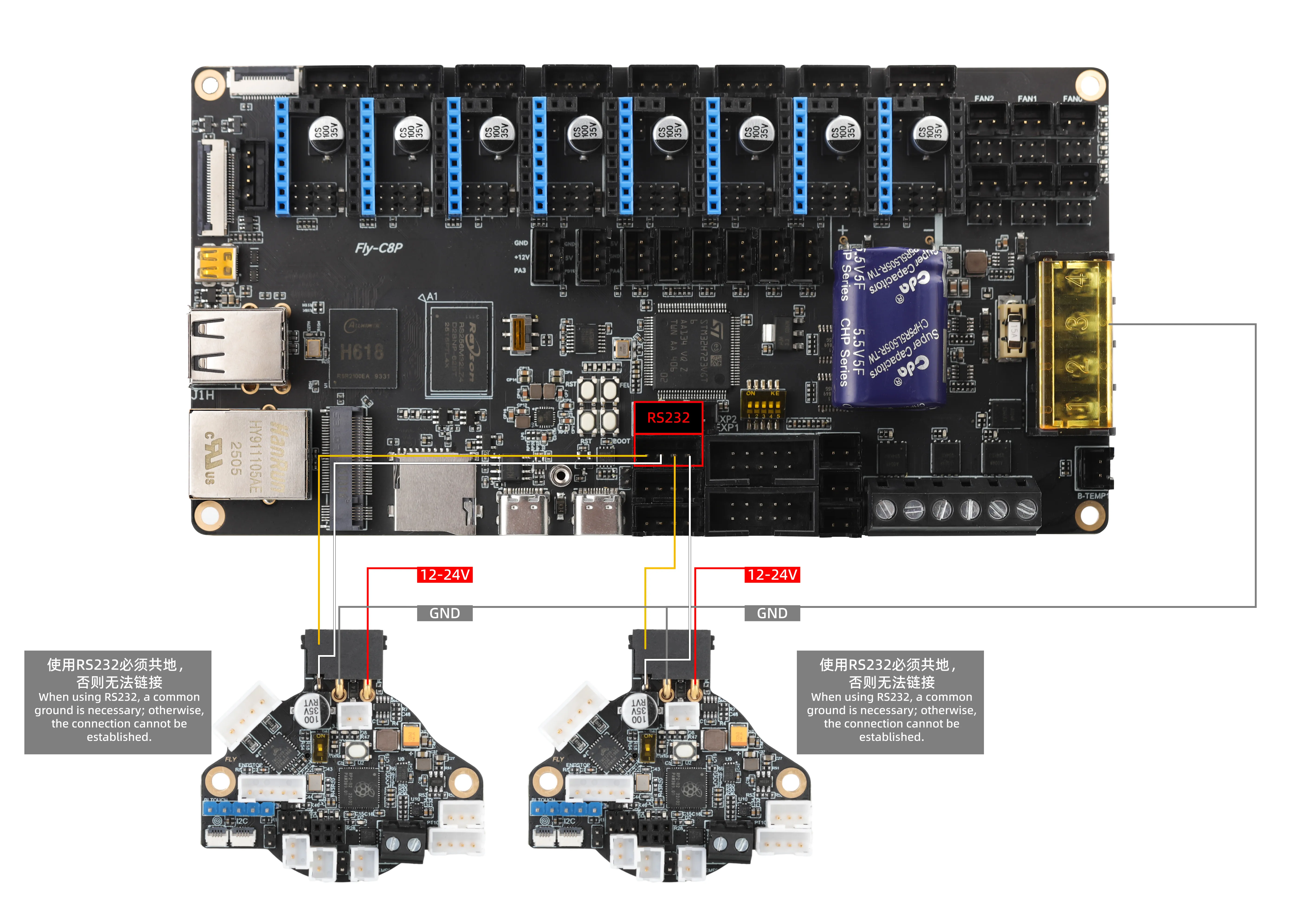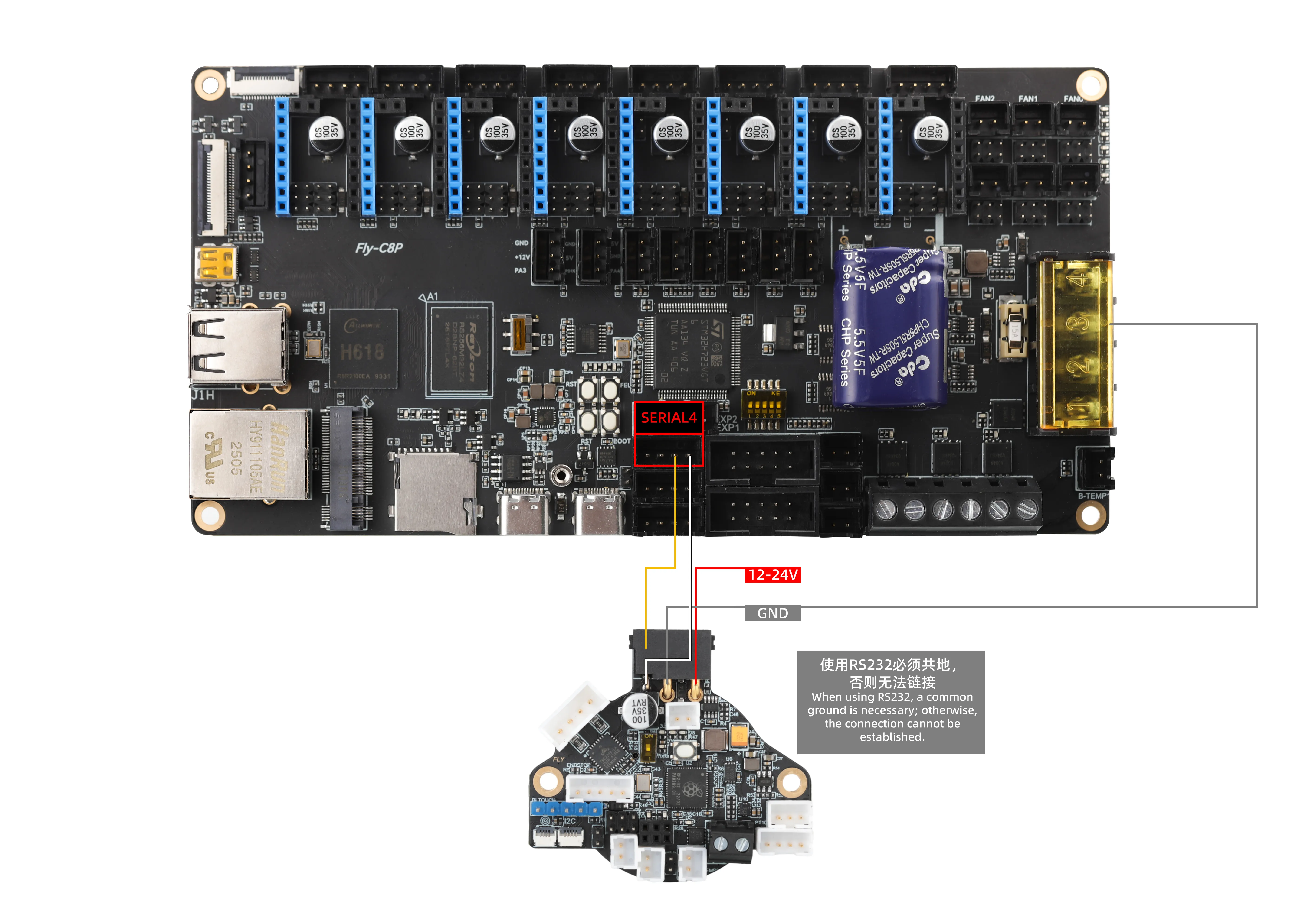 ⚠️ 连接工具板前,必须确保其与C8P使用同一个电源或者将工具板与主板的GND相连(共用同一个24V/12V电源即可实现) - 接口特性: