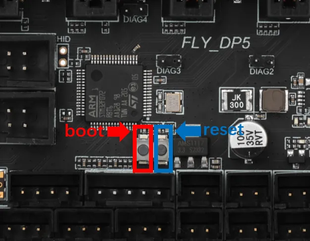 - 优点:快速双击重置(reset)按钮或者快速断电两次即可进入Katapult固件,此时主板上会有LED闪烁