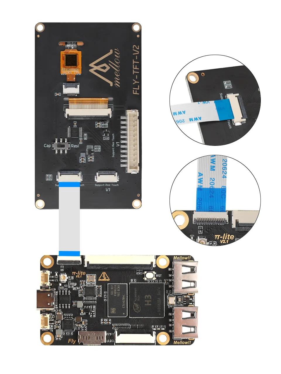 • 使用FPC排线连接TFT或HDMI屏幕时,请务必在完全断电状态下操作,防止屏幕损坏