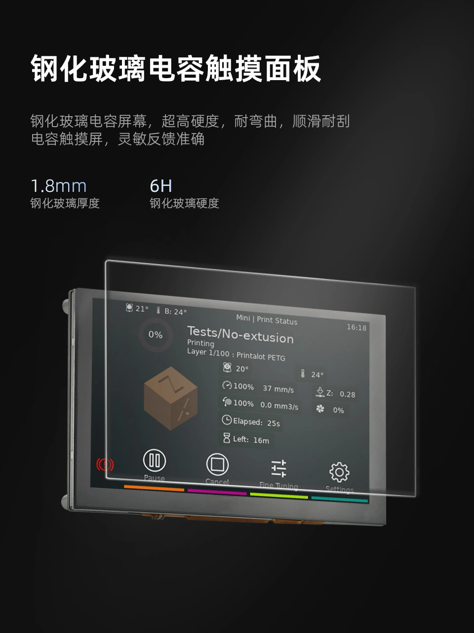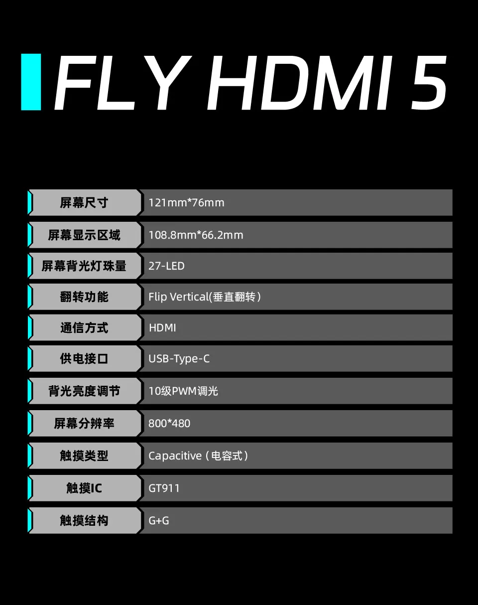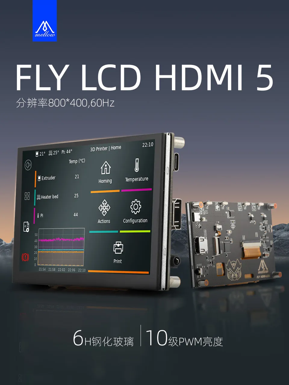 该设备采用独特的 FPC(柔性印刷电路)端口设计,可直接连接到 Fly 设计的主机主板,无需使用 HDMI 和 USB 电缆。这种简化的 FPC 连接减少了电缆杂乱,并确保了干净高效的接口。尽管采用了这种先进的连接方法,但该设备还为喜欢传统连接选项的用户保留了标准 HDMI 端口。 除了灵活的连接性外,该设备还包括智能功能键,可轻松调节亮度、旋转屏幕和重启。高品质进口泡沫粘合剂可确保强大的屏幕粘合力和出色的耐用性。双面低阻散热技术增强了触摸灵敏度,为用户体验更流畅。黄光技术提供精确的色彩还原,标准亮度为 500,避免过度曝光。屏幕由高强度钢化玻璃保护,确保坚固的防损坏保护。 该设备与 Raspberry Pi 等主机系统完全兼容,还采用隐藏式 HDMI 端口设计,电缆整齐地隐藏在设备后面,外观干净专业。其高性能电路设计保证了无缝运行,使其成为性能稳定可靠的3D打印机的理想选择