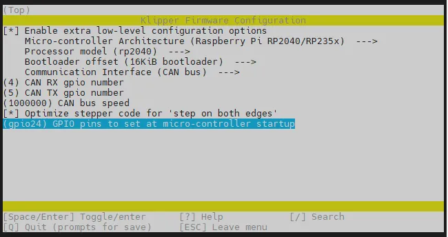 cd ~/klipper && rm -rf ~/klipper/.config && rm -rf ~/klipper/out && make menuconfig