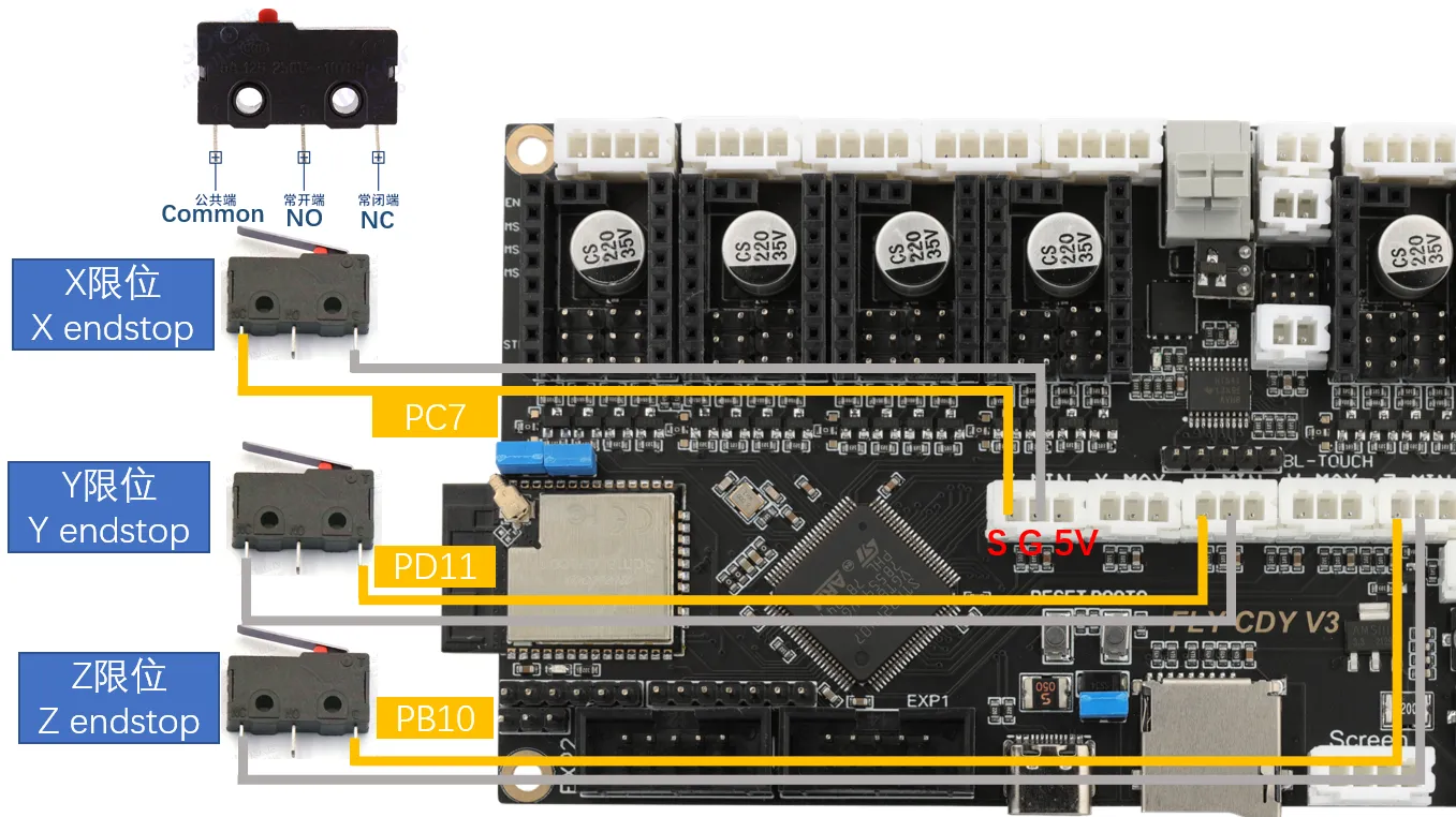 Endstop switches have Normally Open (NO) and Normally Closed (NC) types. For 3D printers, it is generally recommended to use Normally Closed (NC). This way, if there is an issue with the endstop wiring, the system will promptly report an error, helping to avoid unnecessary crashes and printer damage.