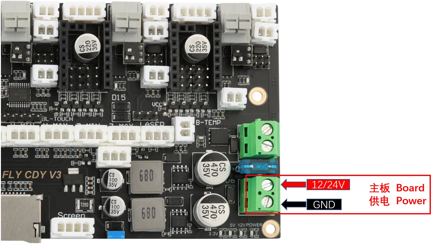 warningIt is not recommended to connect Voron Tap to 24V. Certain versions have a probability of burning out the Tap sensor when using 24V. This is not an issue with FLY products but a design flaw in Voron Tap. Please be aware!!!