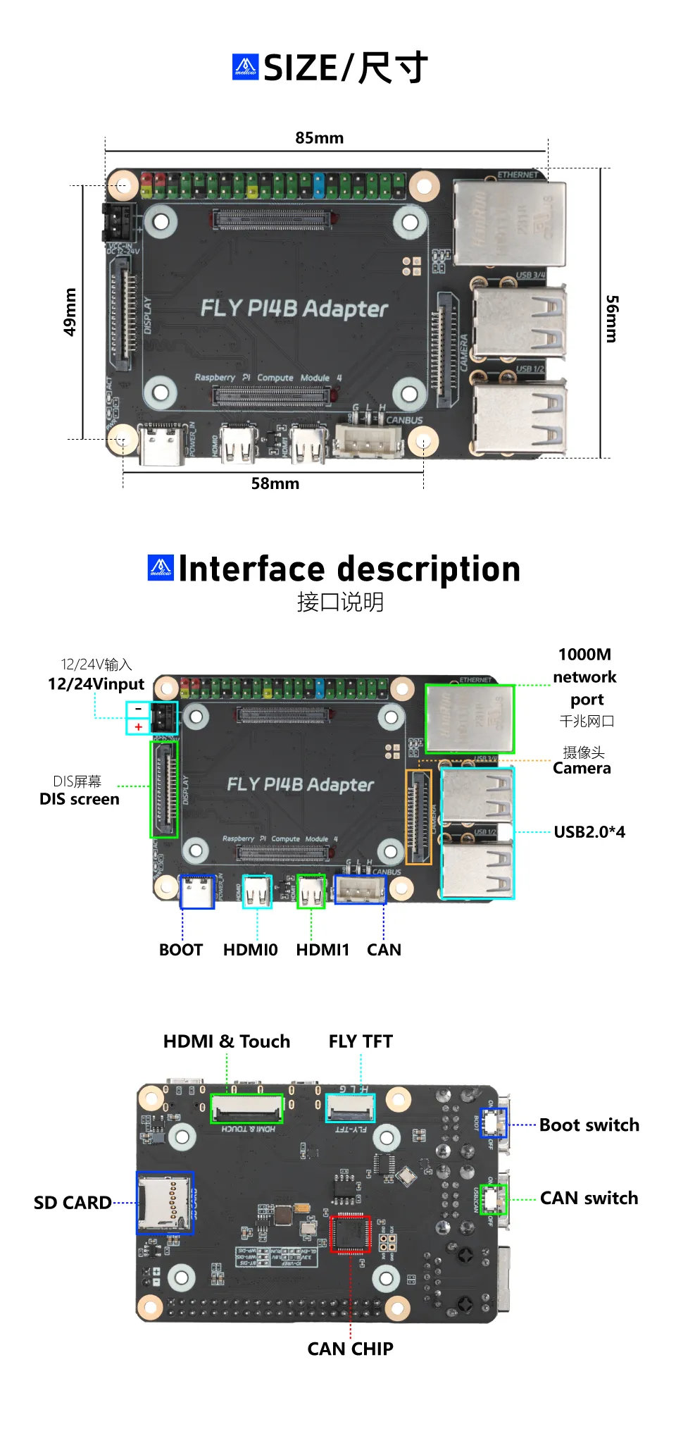 - 40PIN expansion interface, compatible with Raspberry Pi