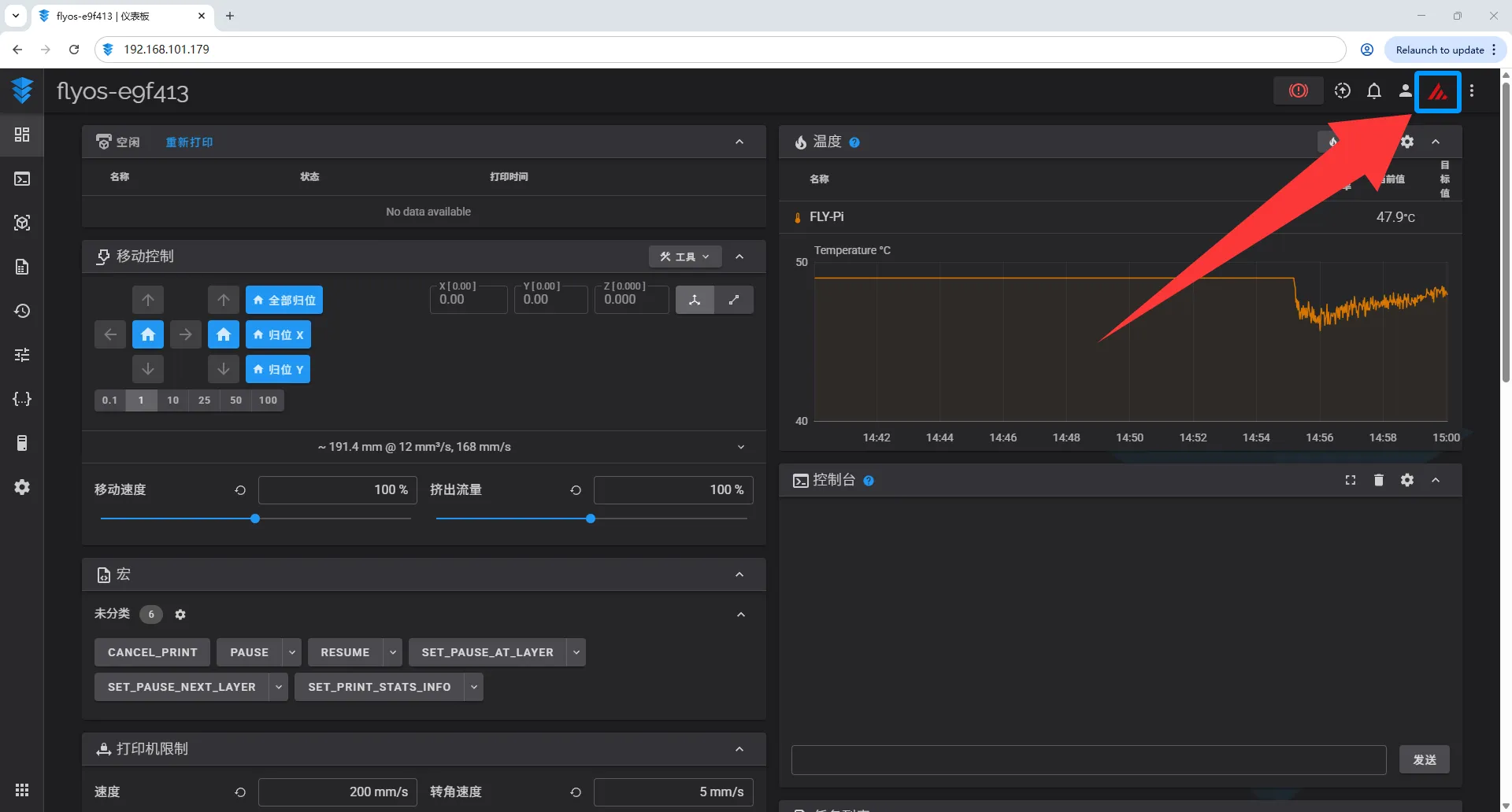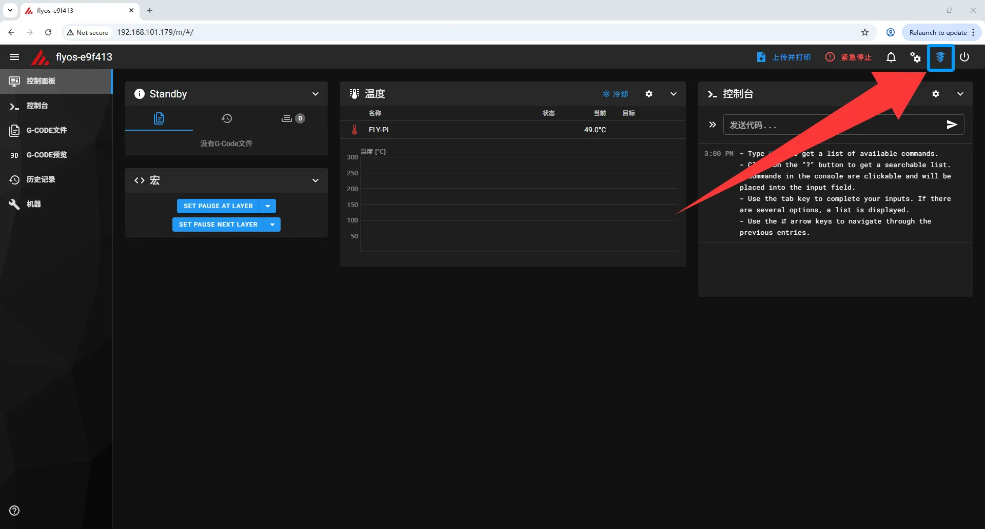 FLYOS-FASTsystem, you can click the mainsail/fluidd icon in the upper right corner to switch between fluidd/mainsail WEB control consoles in real time!