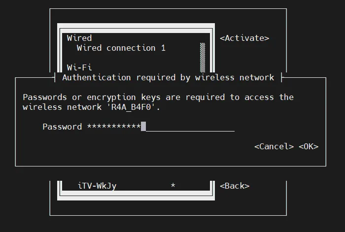 - Next, the following interface appears. Correctly enter your WiFi password and press the