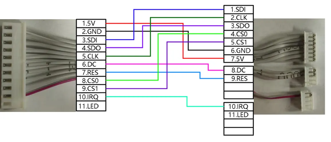 • When wiring the TFT screen, carefully confirm the insertion direction of the FPC cable to avoid reverse connection causing device malfunction.