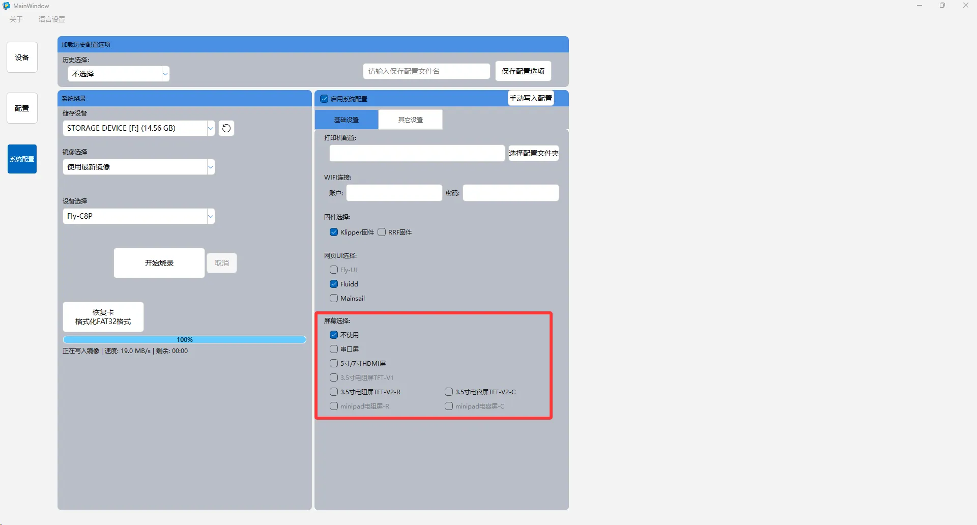 klipper_webui | fluidd | fluiddmainsail | Sélectionnez l'interface web de contrôle de Klipper |
