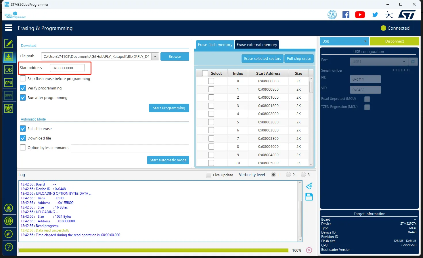 Start addresset entrez0x08000000- Veuillez ignorer cette étape si le firmware est au format