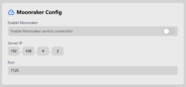 • Premièrement, activer ou non la connexion Moonraker, activé par défaut.