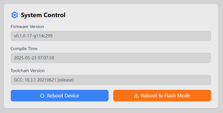 • Peut définir la version du firmware, etc., et peut redémarrer l'appareil ou entrer en mode de gravure de U-IP.