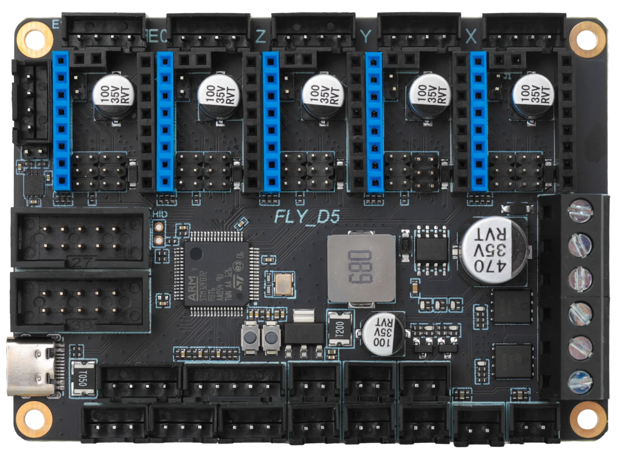 Mellow Fly-D5 est une carte mère haut de gamme pour imprimante 3D développée par l'équipe R&D Fly3D de Guangzhou Mellen Electronics Technology Co., Ltd., prenant en charge jusqu'à 5 moteurs pas à pas.