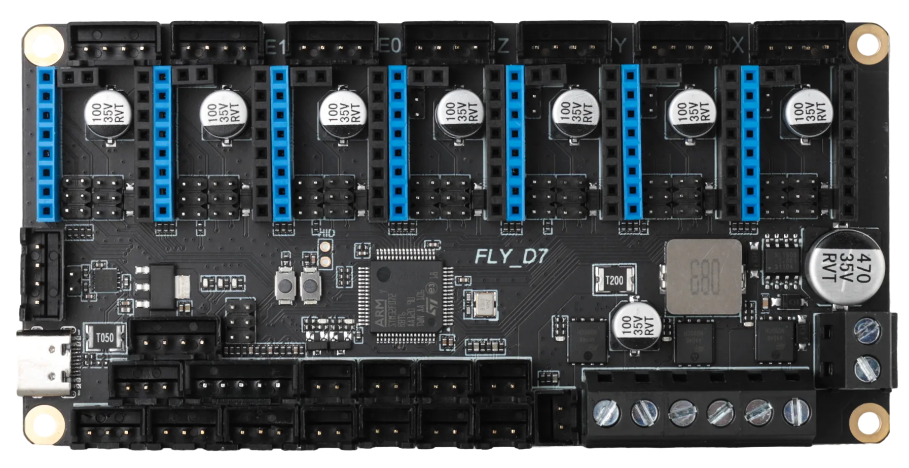 Fly-D7 est une carte mère haute performance pour imprimante 3D développée par l'équipe Fly3D de la société Guangzhou Meilun Electronic Technology Co., Ltd. Elle supporte jusqu'à sept moteurs pas à pas.