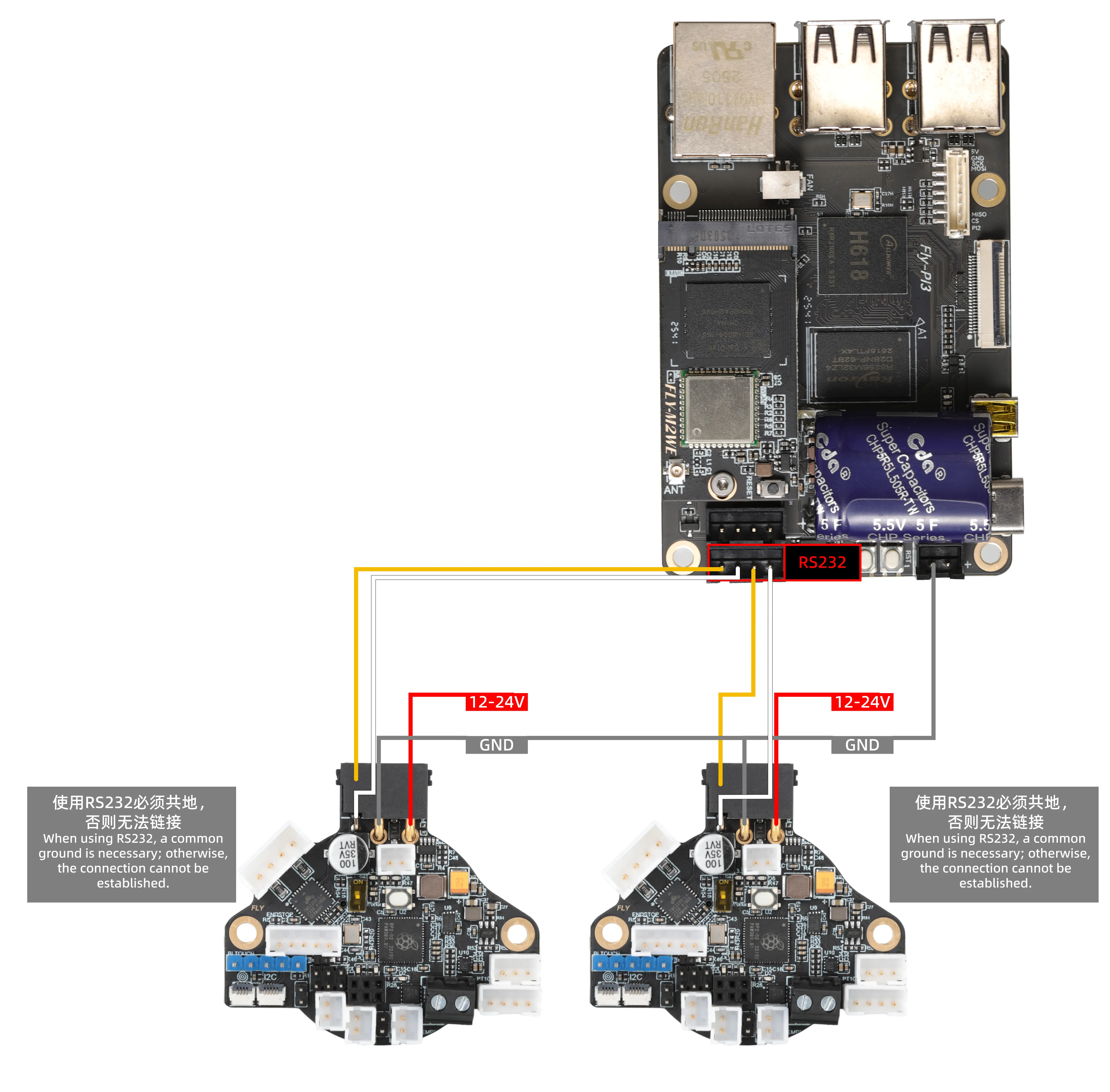 - Les deux interfaces RS232 supportent l'utilisation simultanée et indépendante