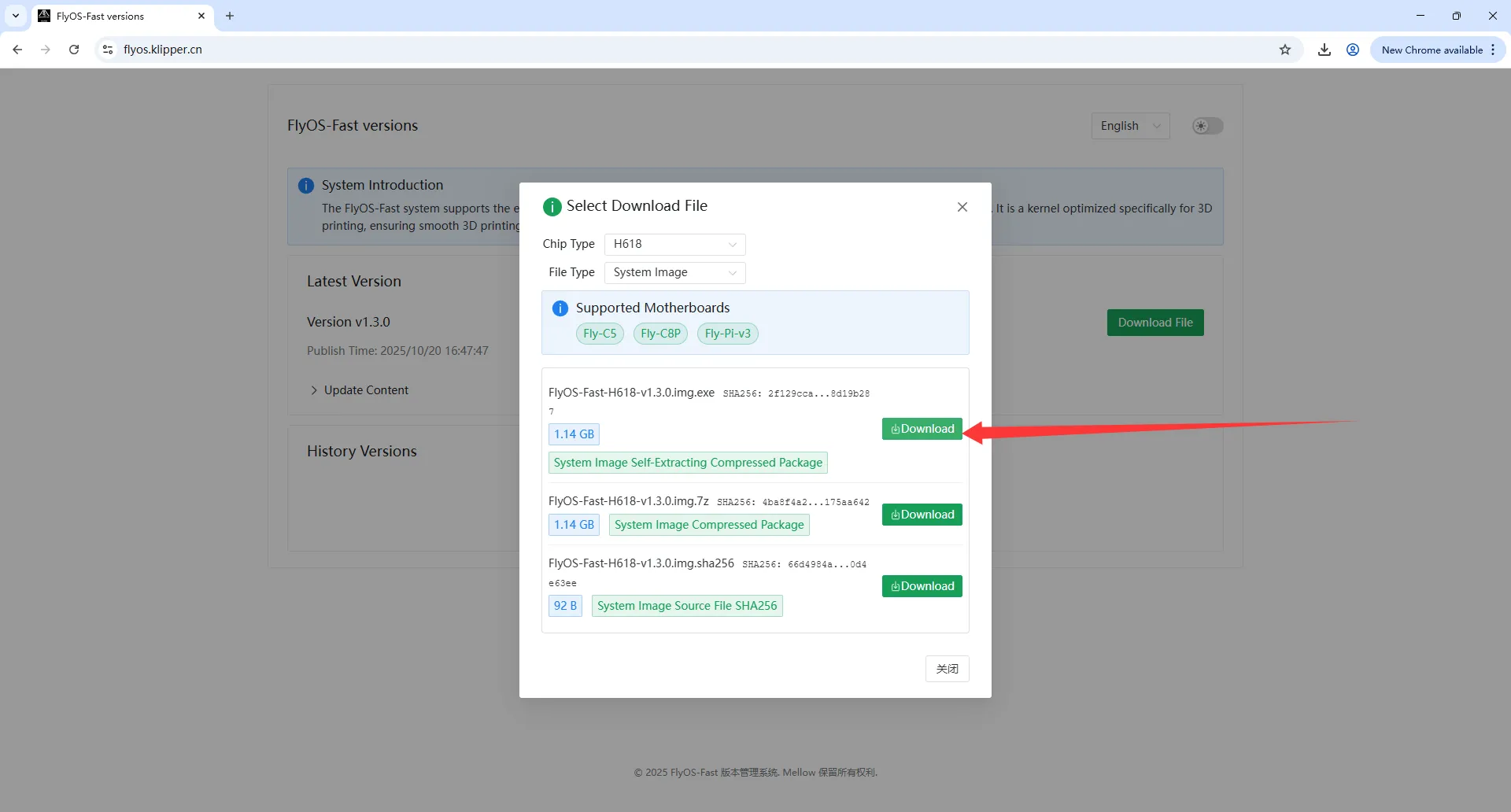 1. Télécharger l'image système FLY-H5 :