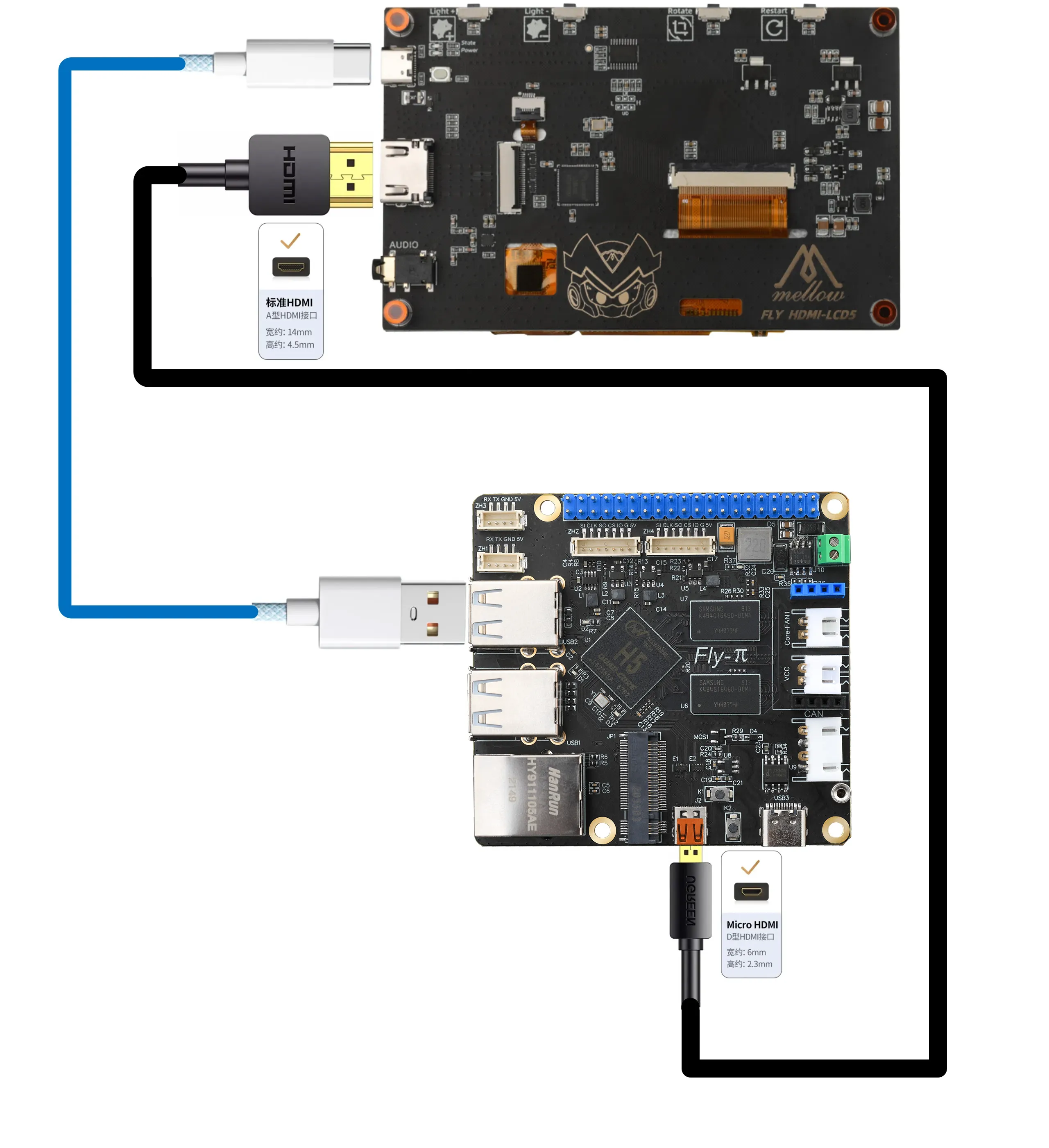- Lors de la connexion d'un écran TFT ou HDMI avec un câble ruban FPC, assurez-vous que l'appareil est complètement hors tension pour éviter d'endommager l'écran.