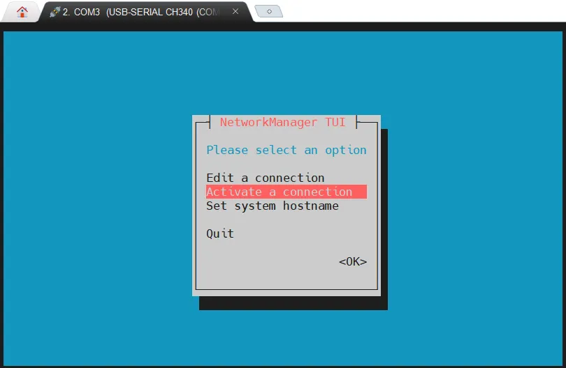 1. Sélectionnez l'option Activate a connection, puis appuyez sur la touche Enter pour accéder au menu suivant