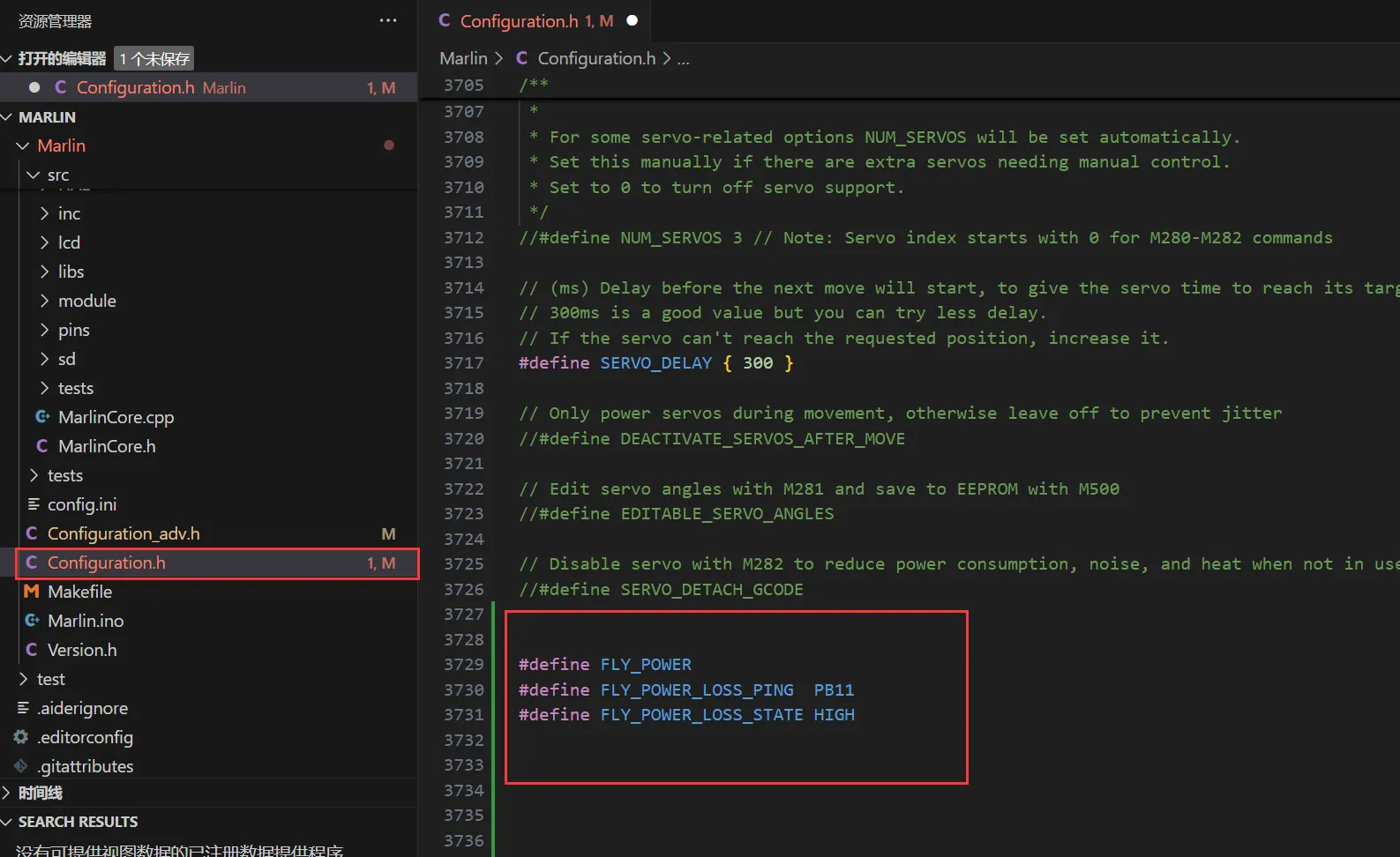 • Ajouter le code suivant dans le fichier Marlin\src\MarlinCore.cpp