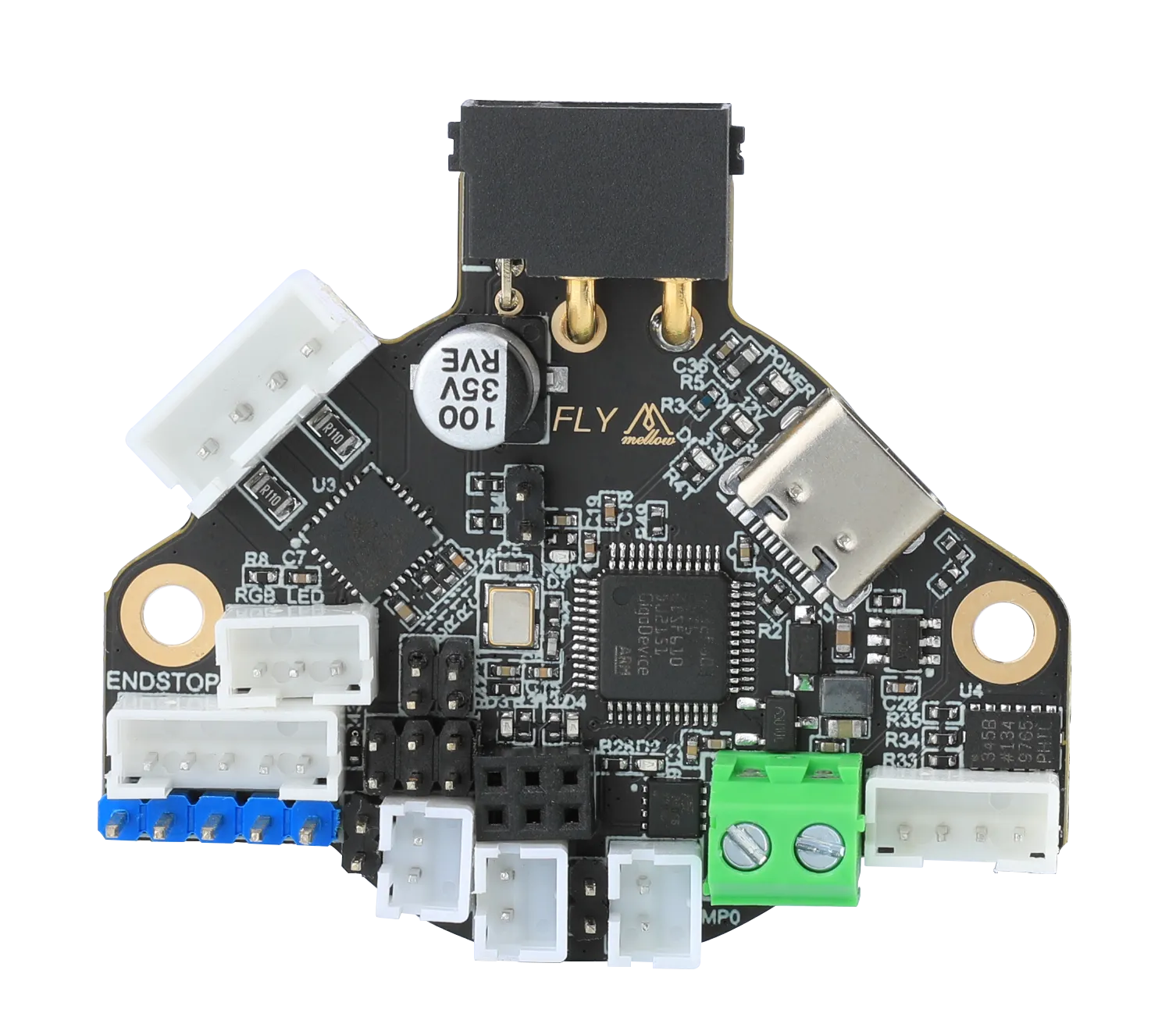 FLY SHT36 V2 est une carte d'outil développée par la société Guangzhou Meilun Electronics Technology Co., Ltd., spécialement conçue pour les têtes d'extrusion des imprimantes 3D. Grâce à cette carte d'outil, quatre câbles peuvent remplacer les connexions complexes entre la carte mère et la tête d'impression, permettant ainsi d'optimiser l'agencement. SHT36 V2 convient aux moteurs pas à pas 36, elle intègre un transceiver CAN, un port USB, un pilote TMC2209, un capteur d'accélération ADXL345, deux ventilateurs commandables ainsi que d'autres fonctionnalités. Cette carte d'outil est compatible avec le firmware Klipper.