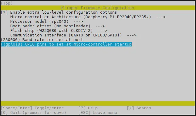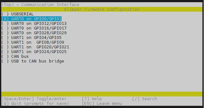 4. La touche Q permet de quitter la page de configuration du firmware Klipper