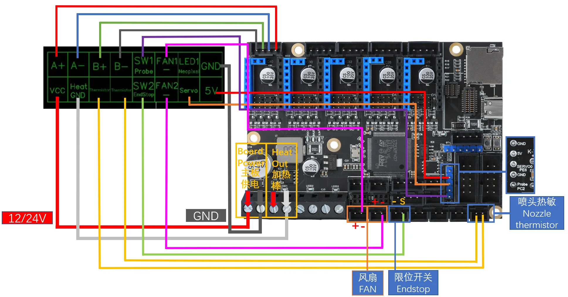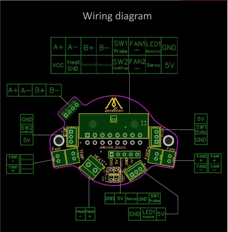 モジュール&拡張ボードクラスFLY-MiniABハブボード簡介このページの見出しFLY-MiniAB集線板 接線說明 ヒント 本教程以E3V2為例 風扇說明 VCC 對應風扇接法,如果使用5V風扇請將跳線移動到上方 Loading...