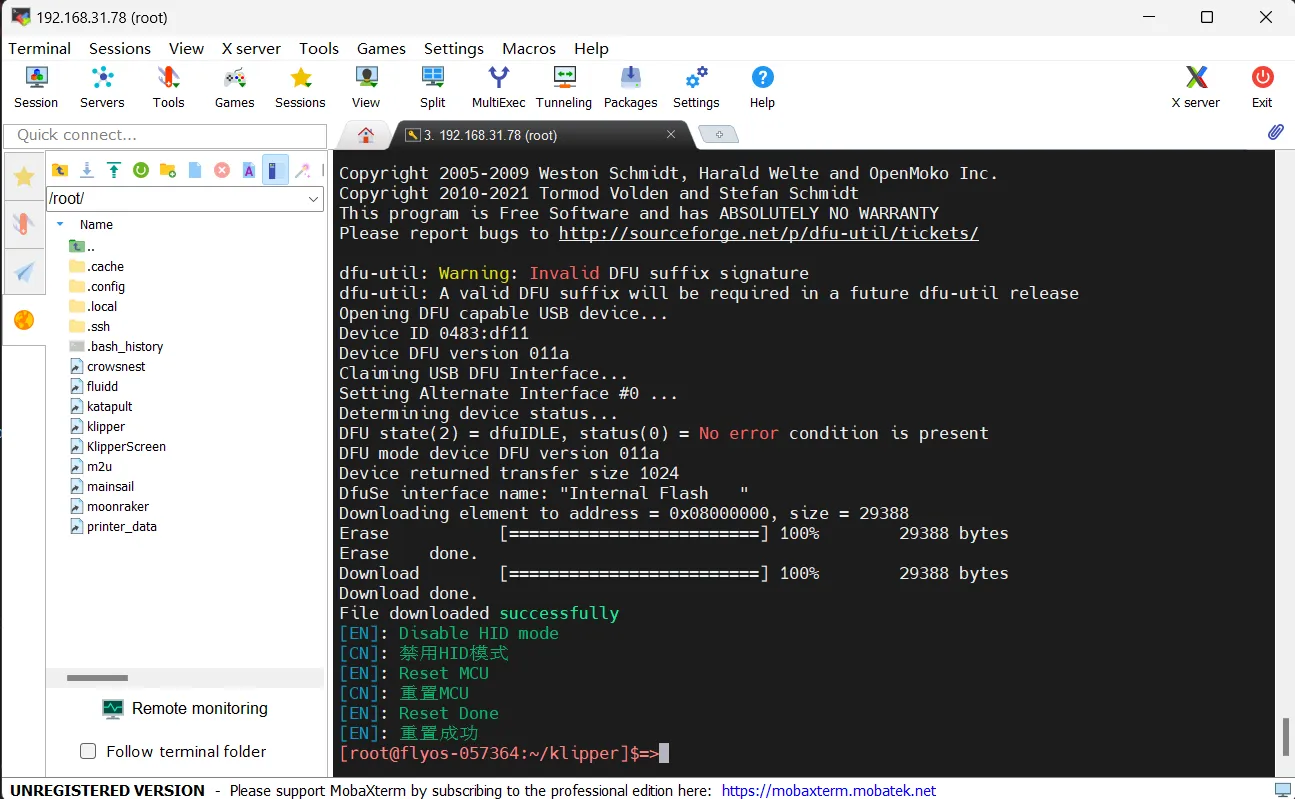 fly-flash -d auto -u -f /usr/lib/firmware/bootloader/hid_bootloader_h723_v1.0.bin