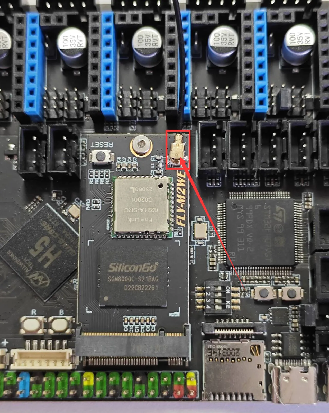 • 赤矢印が指す場所がWi-Fiアンテナの接続口です