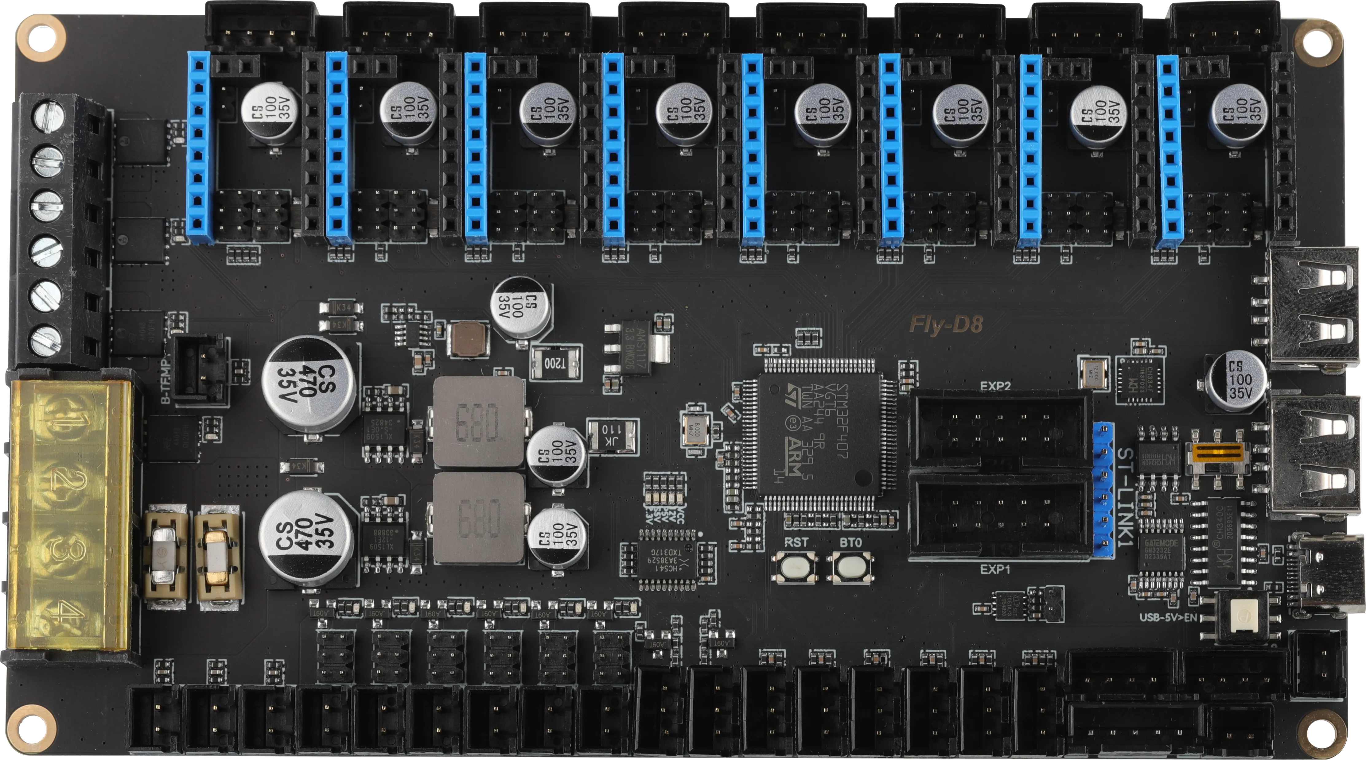 Mellow Fly-D8は広州MELON電子科技有限公司のFly3Dマザーボード開発チームがリリースした高性能3Dプリンターマザーボードで、最大8つのステッピングモーターをサポートします。