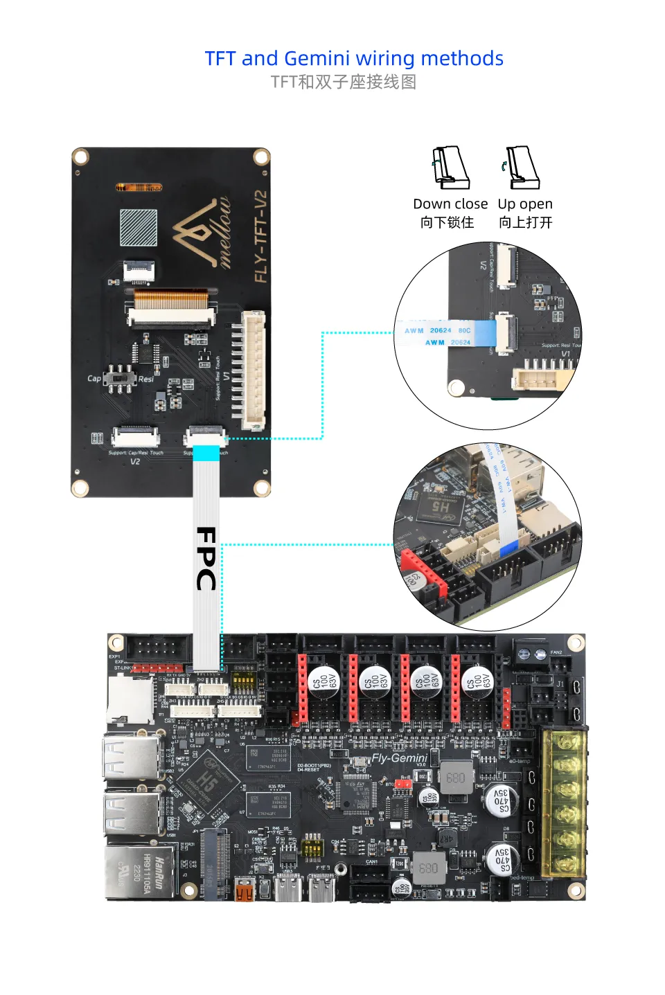 • TFTまたはHDMIディスプレイをFPCフレキシブルケーブルで接続する場合は、必ず完全に電源を切った状態で操作を行い、ディスプレイの損傷を防止してください。
