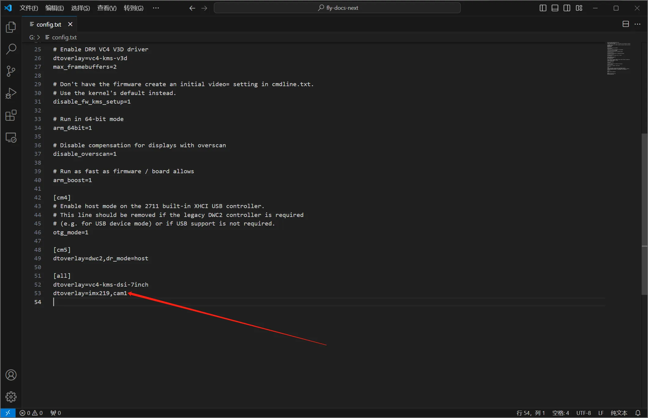 上位コンピュータクラスFLY-CM4拡張ボードCSIカメラの使用方法このページの見出しcsiメインボードへの配線 CSIの使用 CSIの使用方法 * ミラーリング書き込みが完了したら、/boot/config.txtに移動し、`camera_auto_detect=1`を見つけ、それを`camera_auto_detect=0`に変更してから、カメラのモデルに合わせて設定を追加します。* 以下は参考設定です。```bashdtoverlay=imx219,cam1 Loading...