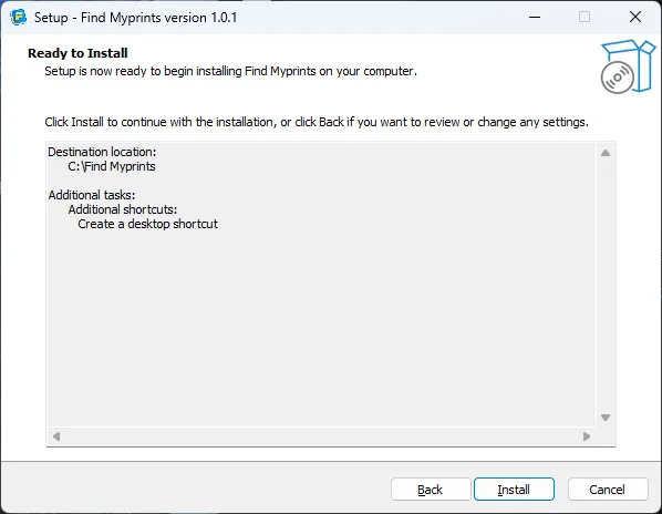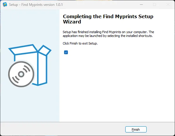 Find_Myprints.exeインストーラをダブルクリックして実行すると、システムがインストールウィザード画面を表示します。