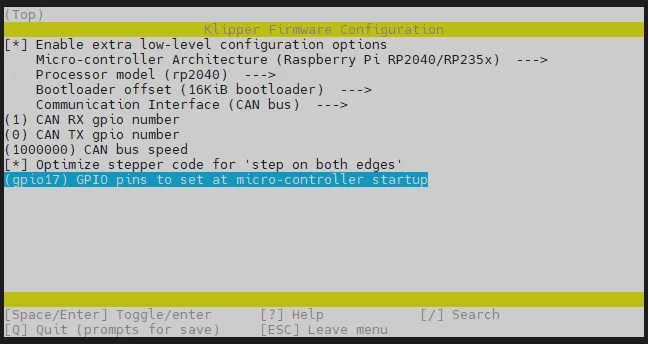cd ~/klipper && rm -rf ~/klipper/.config && rm -rf ~/klipper/out && make menuconfig