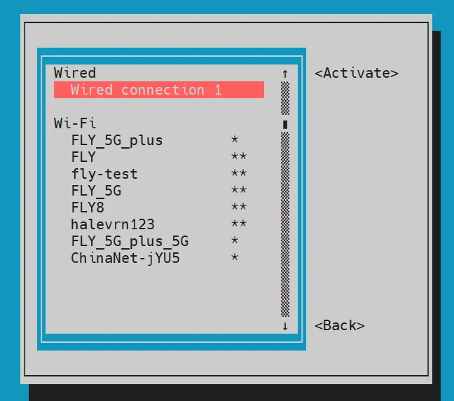 1. Enter 키를 눌러 Activate a connection을 선택한 후 다시 Enter 키를 누릅니다.