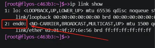 • 네트워크 카드 이름 확인, 예: eth0, end0