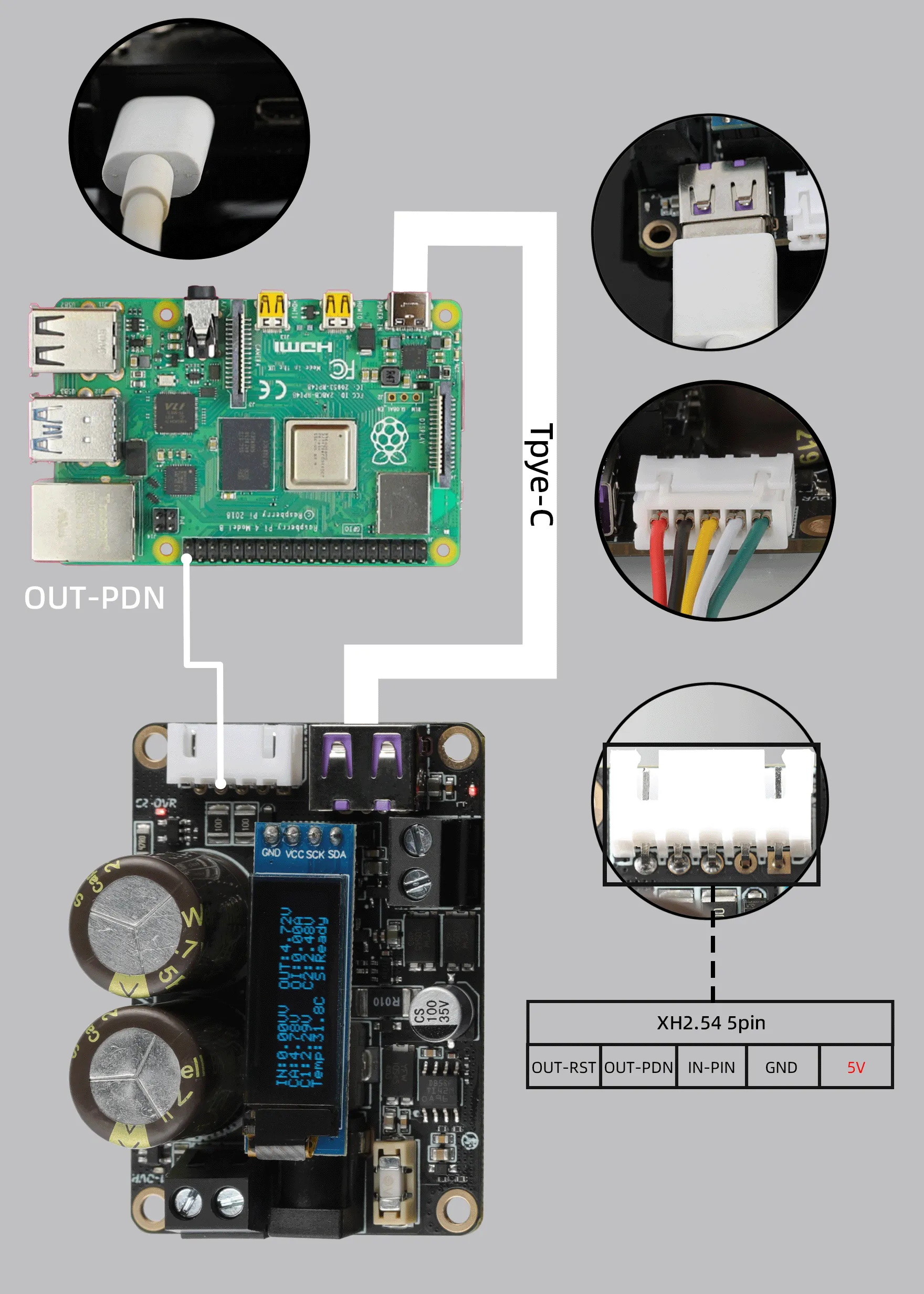 기본값으로 하이로 설정되며, 모듈에 전원을 켜면 마지막으로 전원이 꺼진 시간을 자동으로 감지합니다. 전원 차단 시간이 10초 미만인 경우 10초가 될 때까지 기다린 후 5V 출력을 자동으로 한 번 켰다가 끕니다 (호스트 컴퓨터가 완전히 종료되고 다시 재시작할 수 있도록 보장하기 위함). GND에 연결하면 자동 감지 기능이 비활성화됩니다.