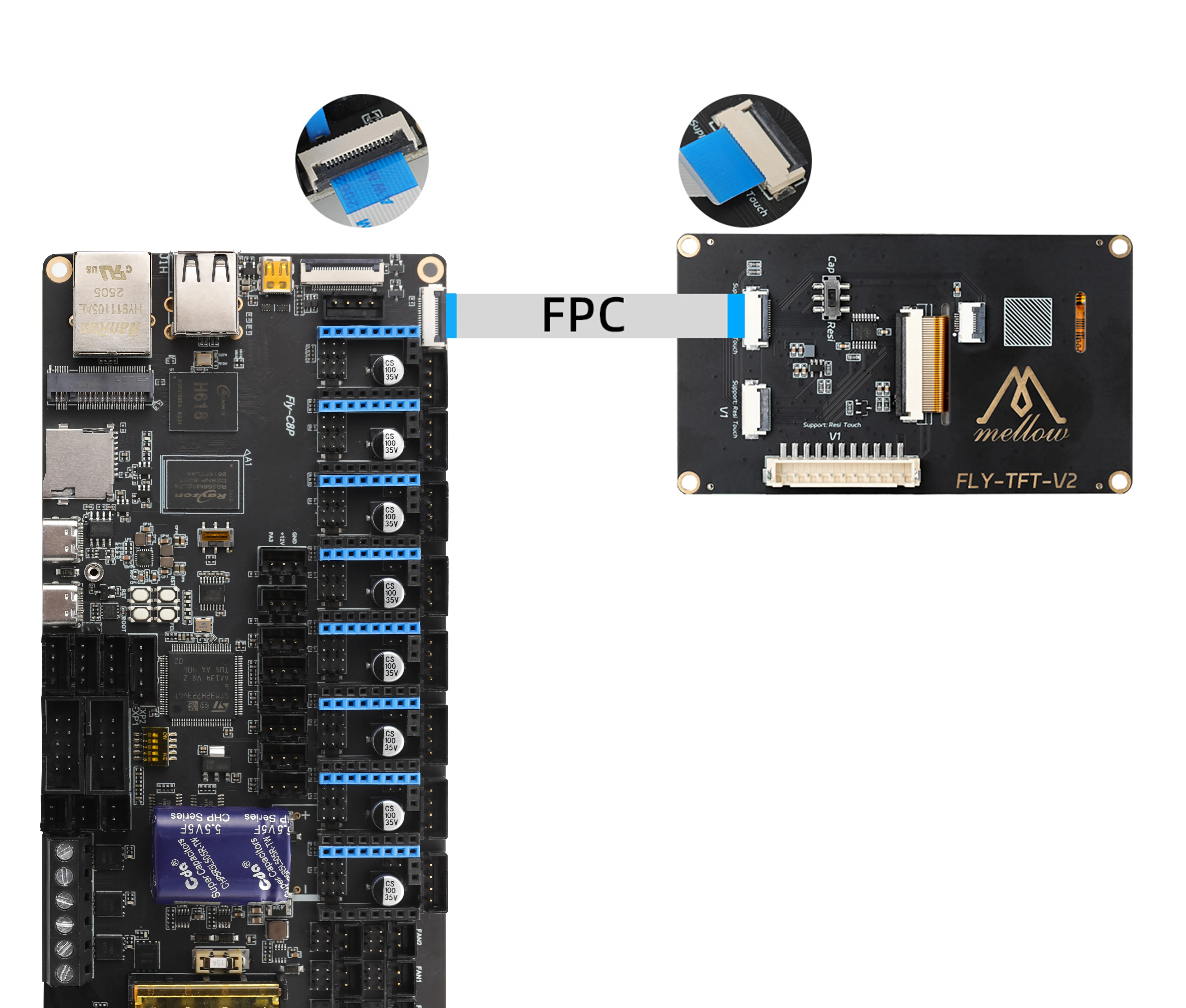 • TFT 화면 배선 시 FPC 케이블의 삽입 방향을 주의 깊게 확인하여 케이블 역접촉으로 인한 장치 고장을 피하세요.