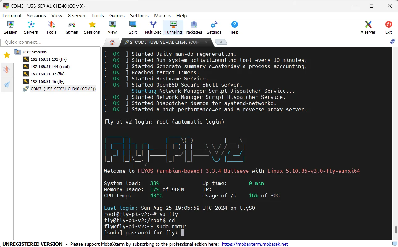 먼저 시리얼을 통해 호스트 머신에 연결하십시오: FLYOS-Armbian 시리얼 연결 호스트 머신 ssh