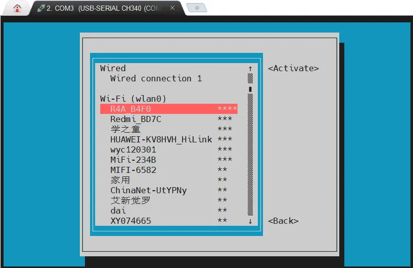 Activate a connection옵션을 선택하고Enter키를 눌러 하위 메뉴로 이동합니다.