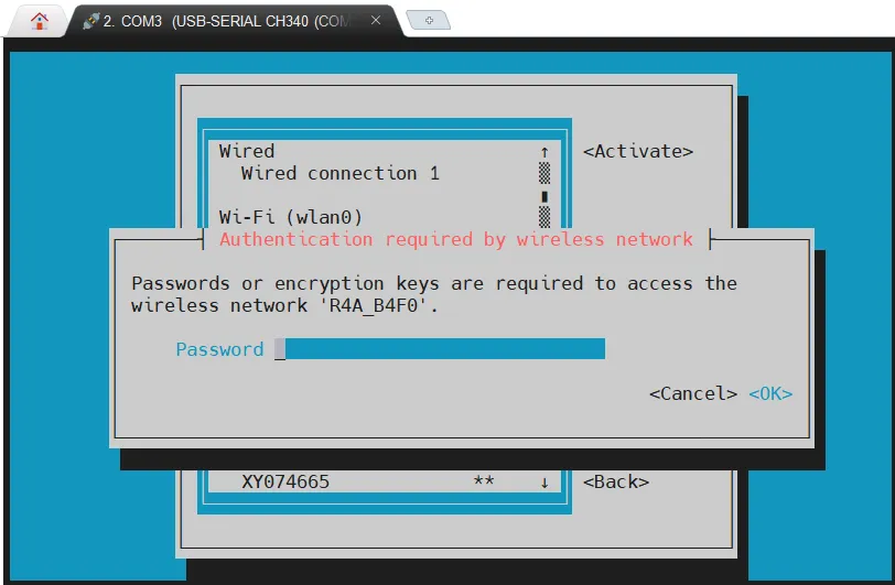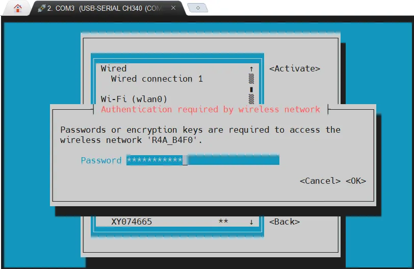 - 다음과 같은 화면이 나타나면 올바른 WiFi 비밀번호를 입력한 후