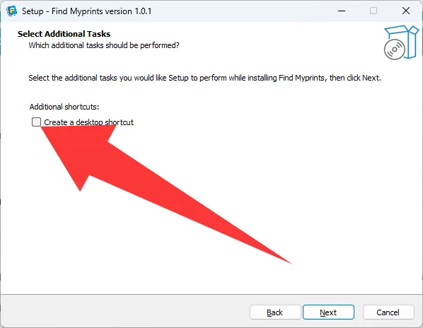 Create a desktop shortcut선택 후Next를 클릭하여 계속 진행하세요.