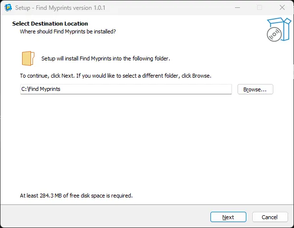 C:\Config Myprint - 경로 변경: Browse... 버튼을 클릭하면 새로운 설치 디렉터리를 직접 지정할 수 있습니다.