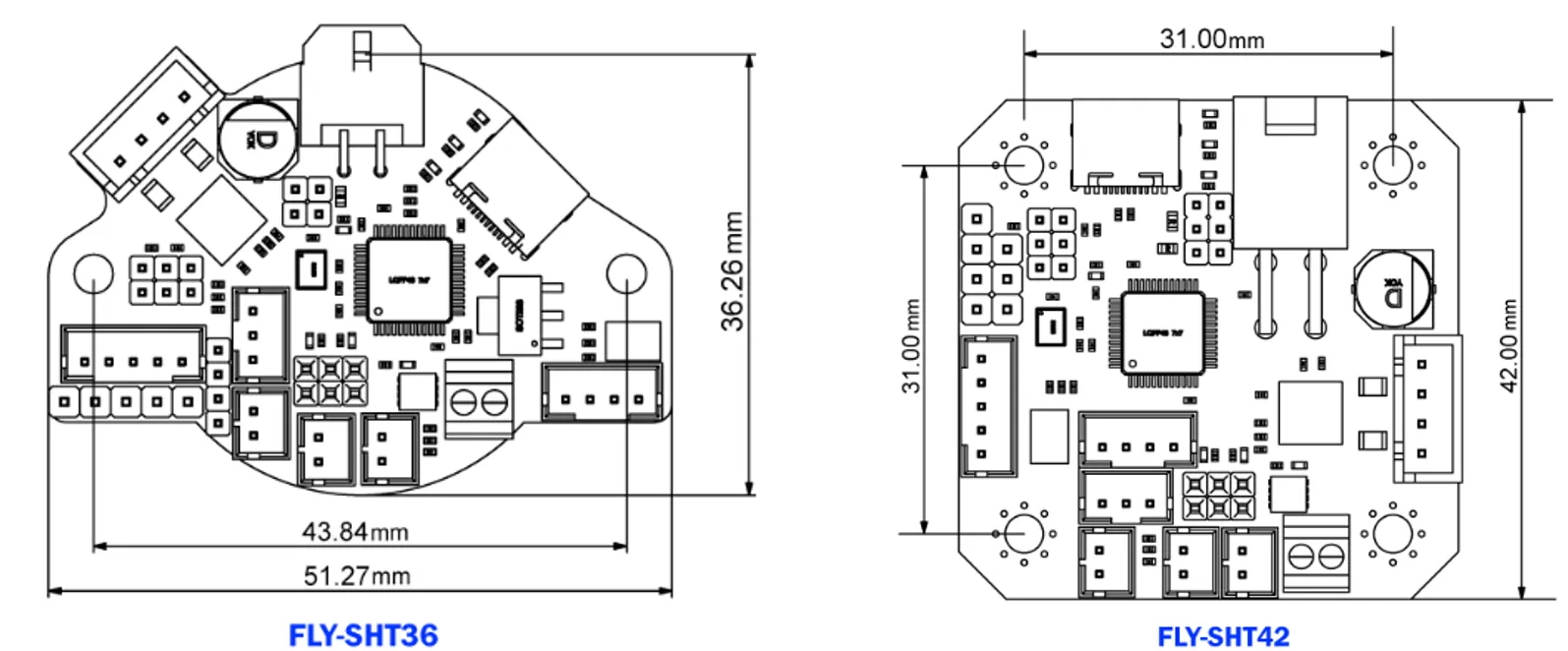 1. 외형 치수: 51.27mm36.26mm(SHT36), 42mm42mm(SHT42)