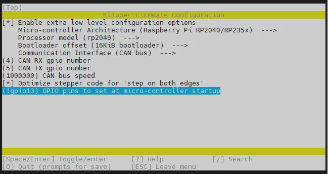 4. Q 키는 Klipper 펌웨어 구성 페이지를 종료합니다.