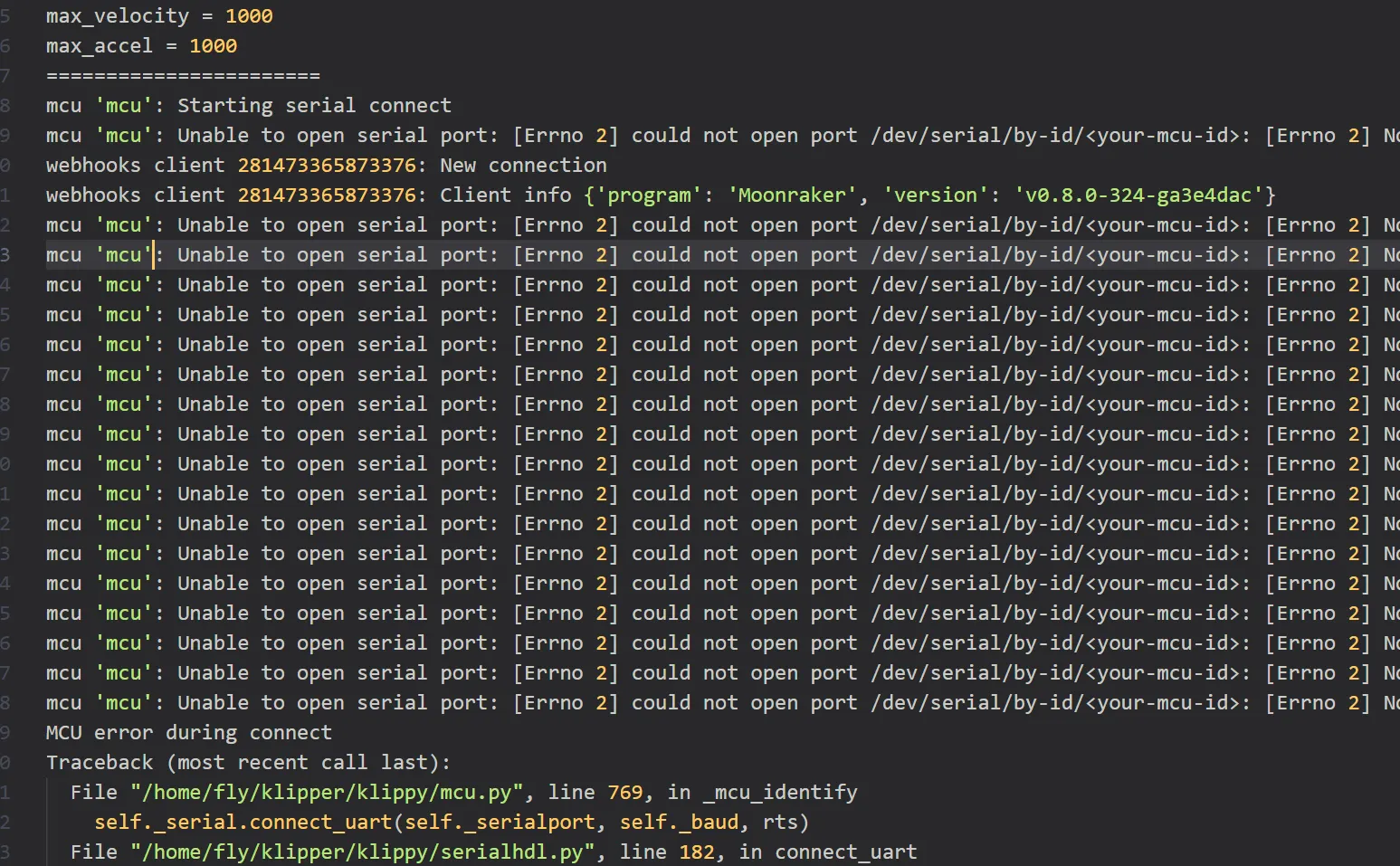 [Errno 2], это означает, что ID не был найден и добавлен в файл printer.cfg
