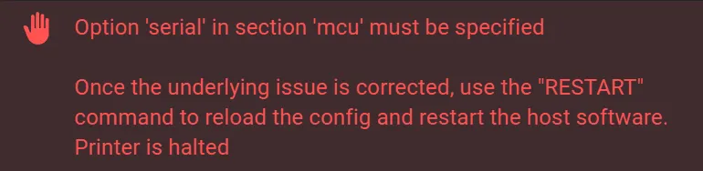 Опция 'serial' в разделе 'mcu' должна быть указана
