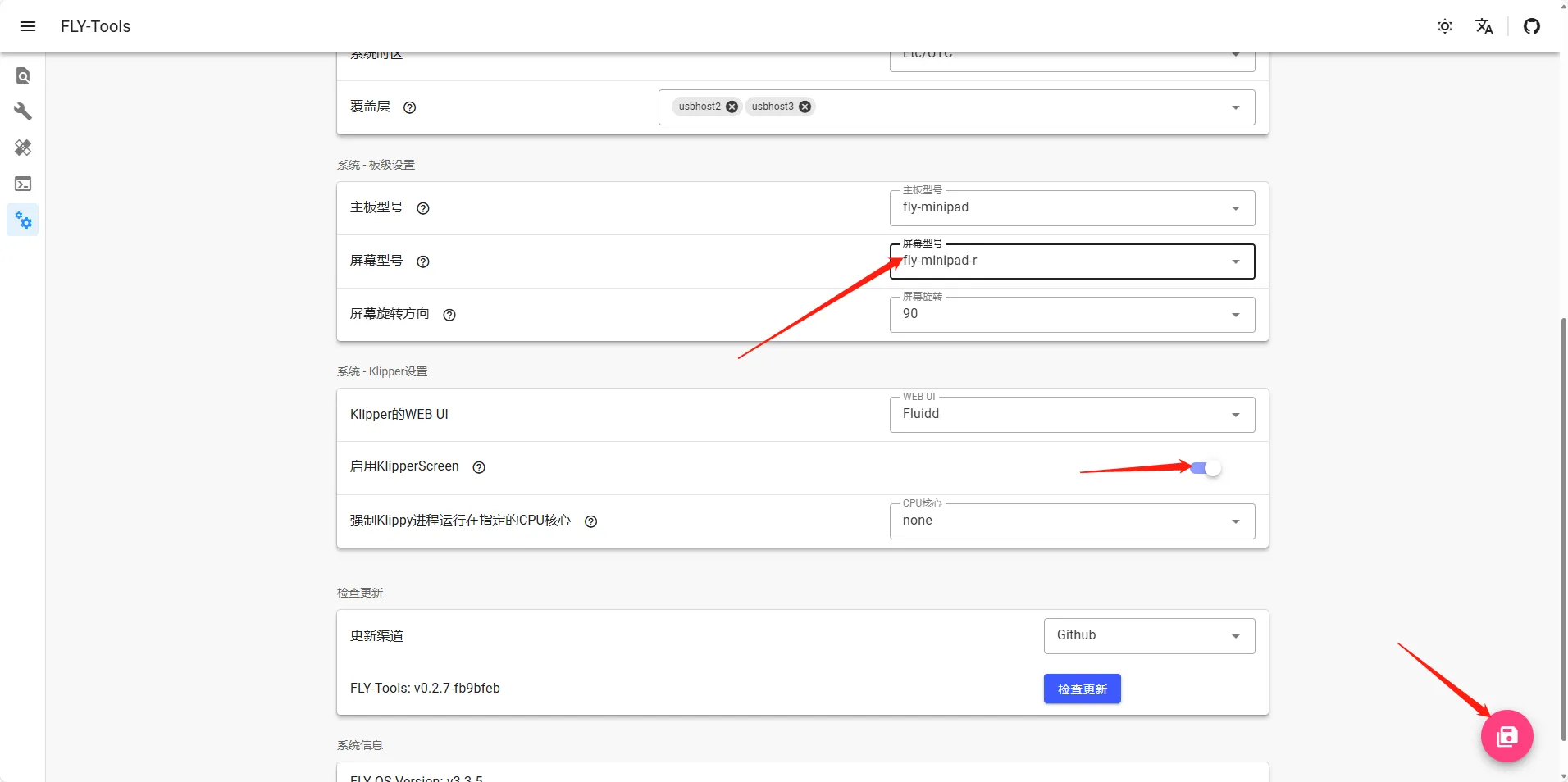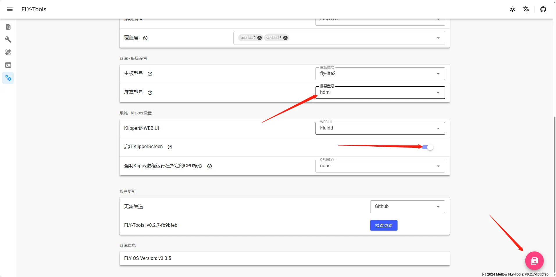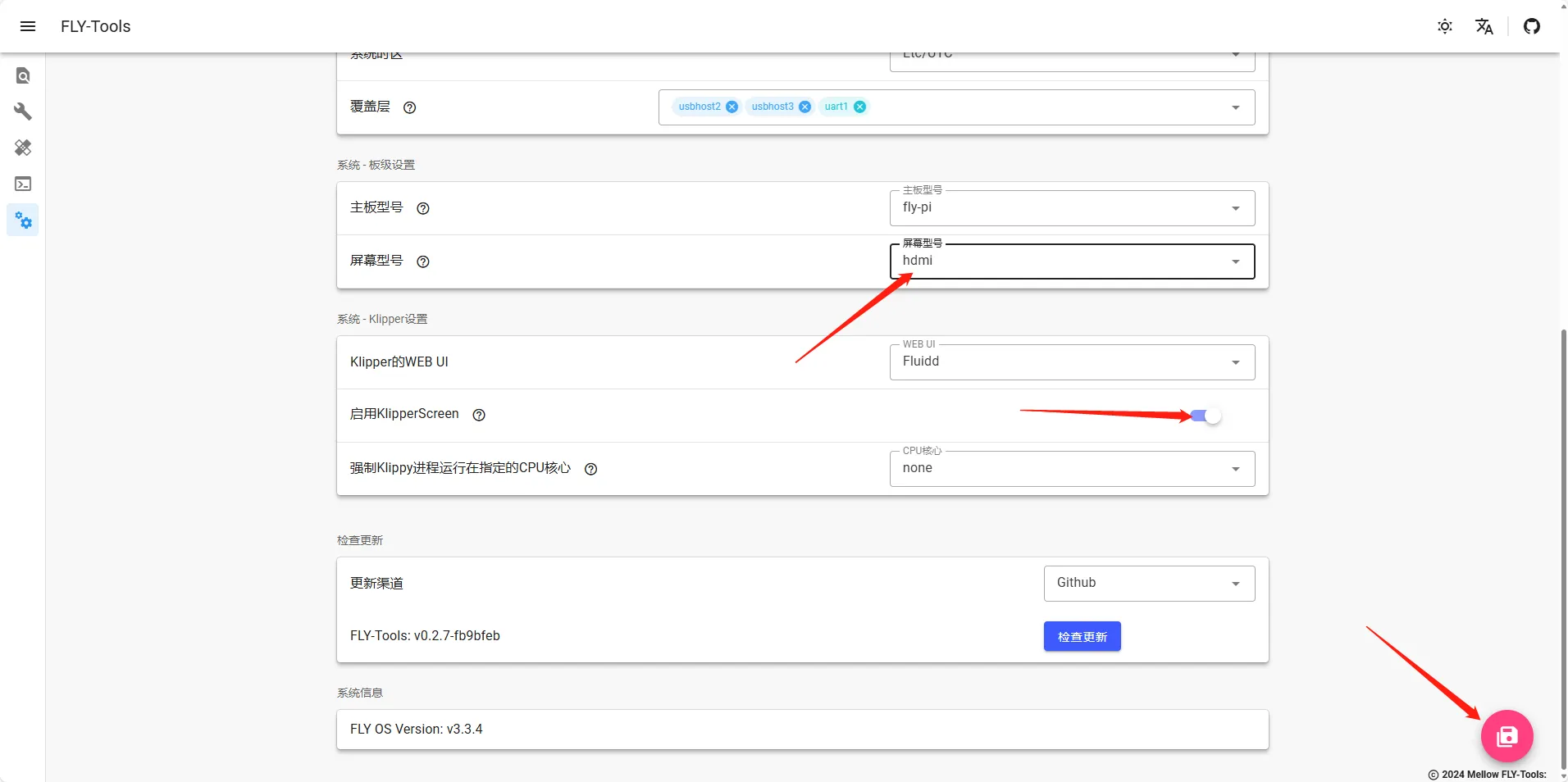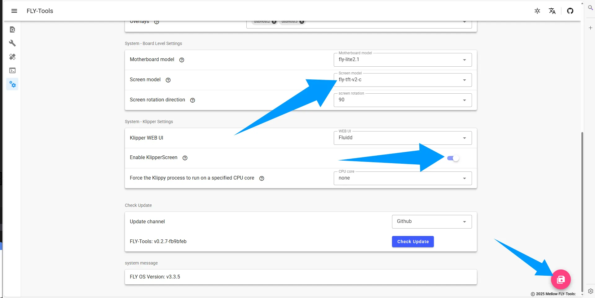 • Убедитесь, что хост-машина подключена к WiFi и получила IP-адрес. В браузере введите IP:9999, чтобы открыть FLY TOOLS и настроить экран