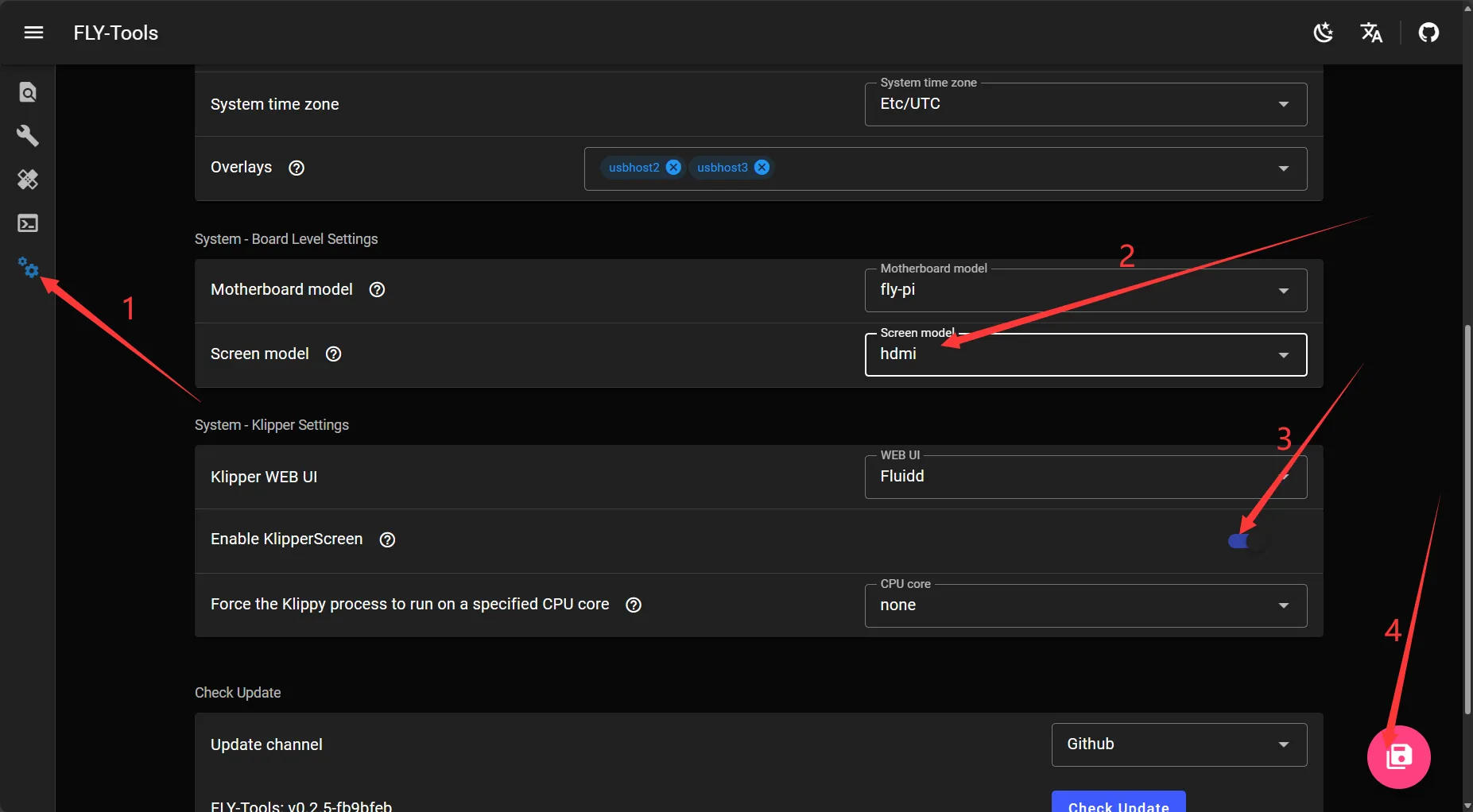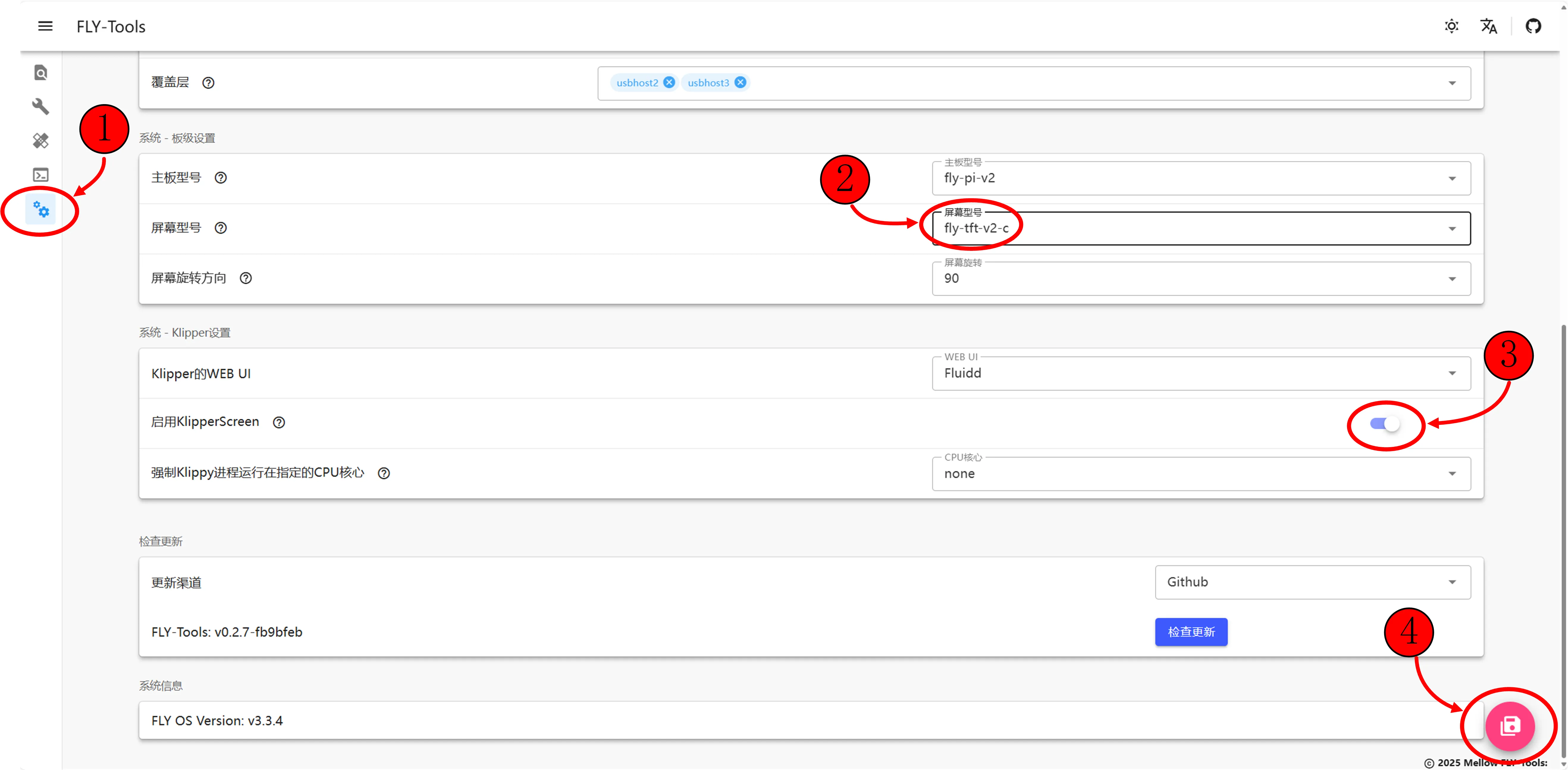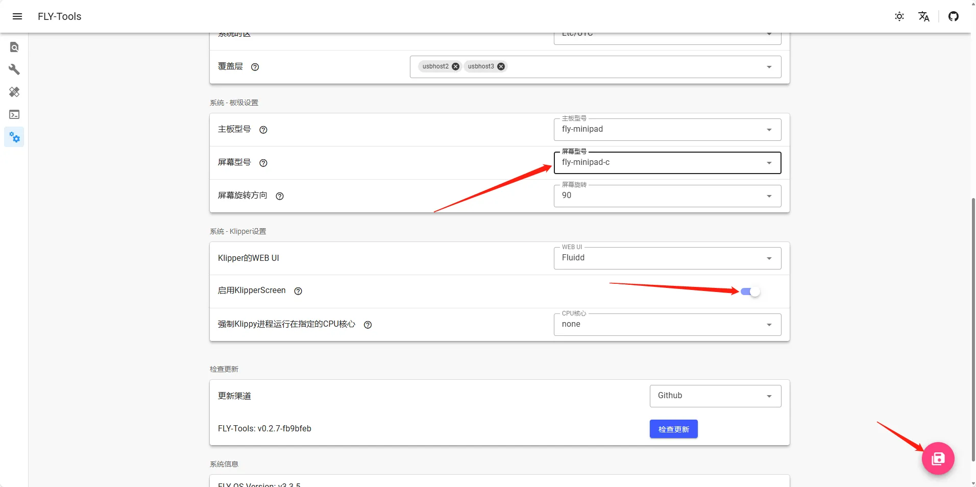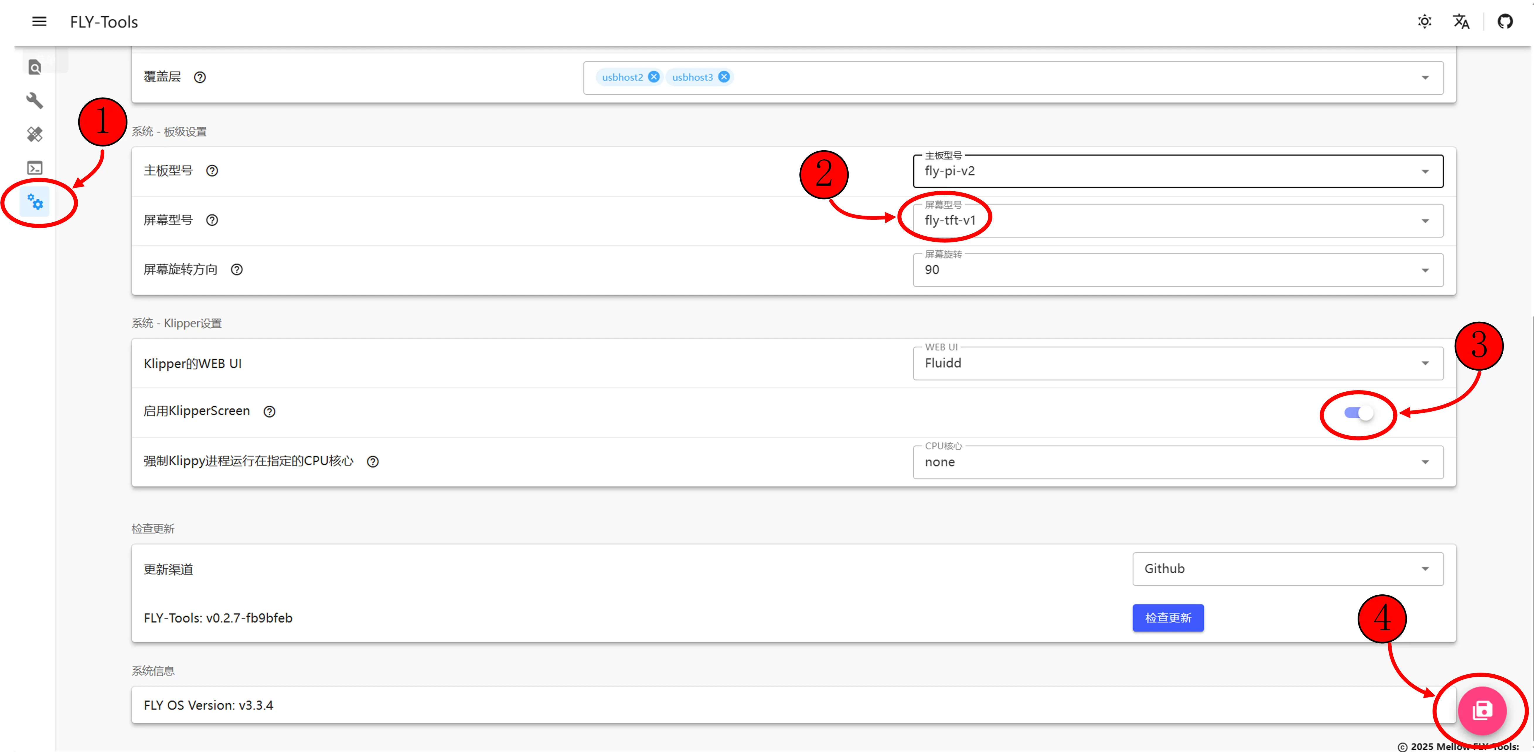 • Убедитесь, что хост-машина подключена к WiFi и получила IP-адрес. В браузере введите IP:9999, чтобы открыть FLY TOOLS и настроить экран
