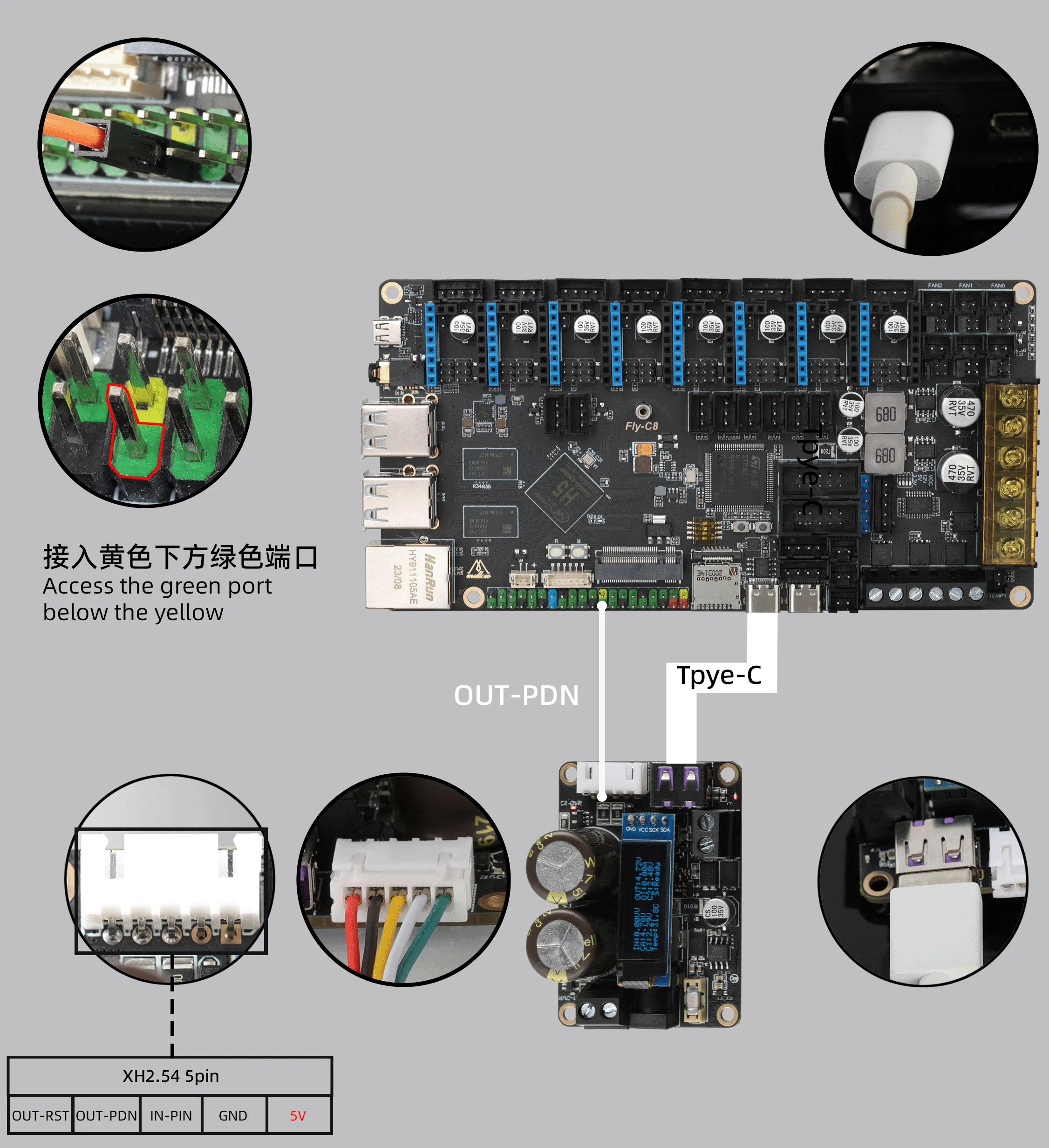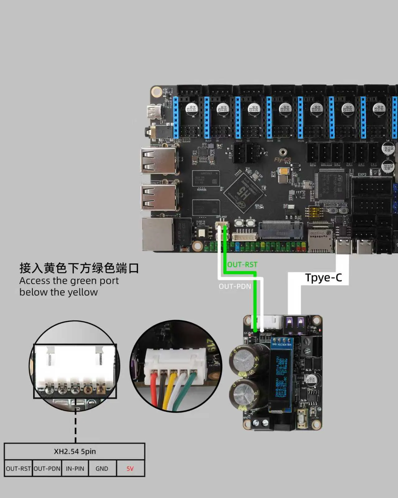 - Подключение FLY-C8 с помощью 5V